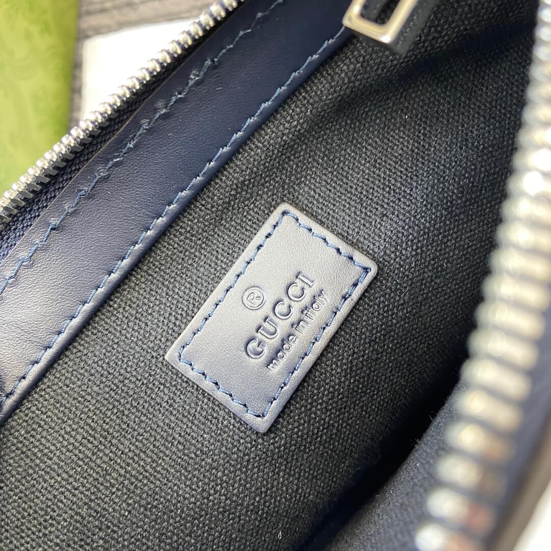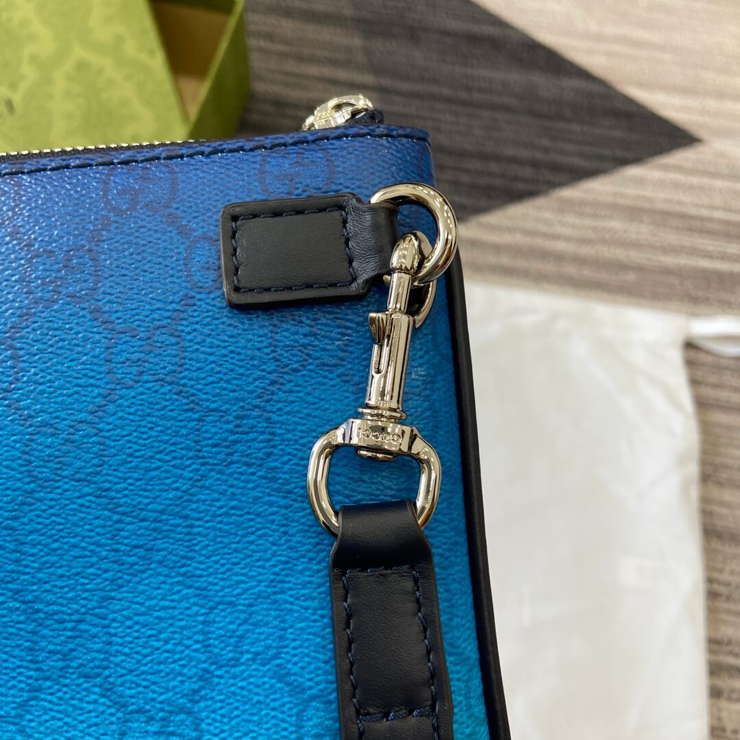 Description / الوصف An essential piece for 2025, crafted from GG monogram fabric featuring a unique and elegant blue gradient print. قطعة أساسية لعام ٢٠٢٥، مصنوعة من قماش مونوغرام GG وتتميز بطبعة متدرجة باللون الأزرق فريدة وأنيقة.