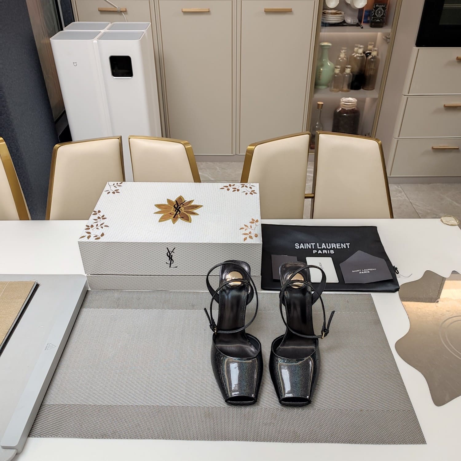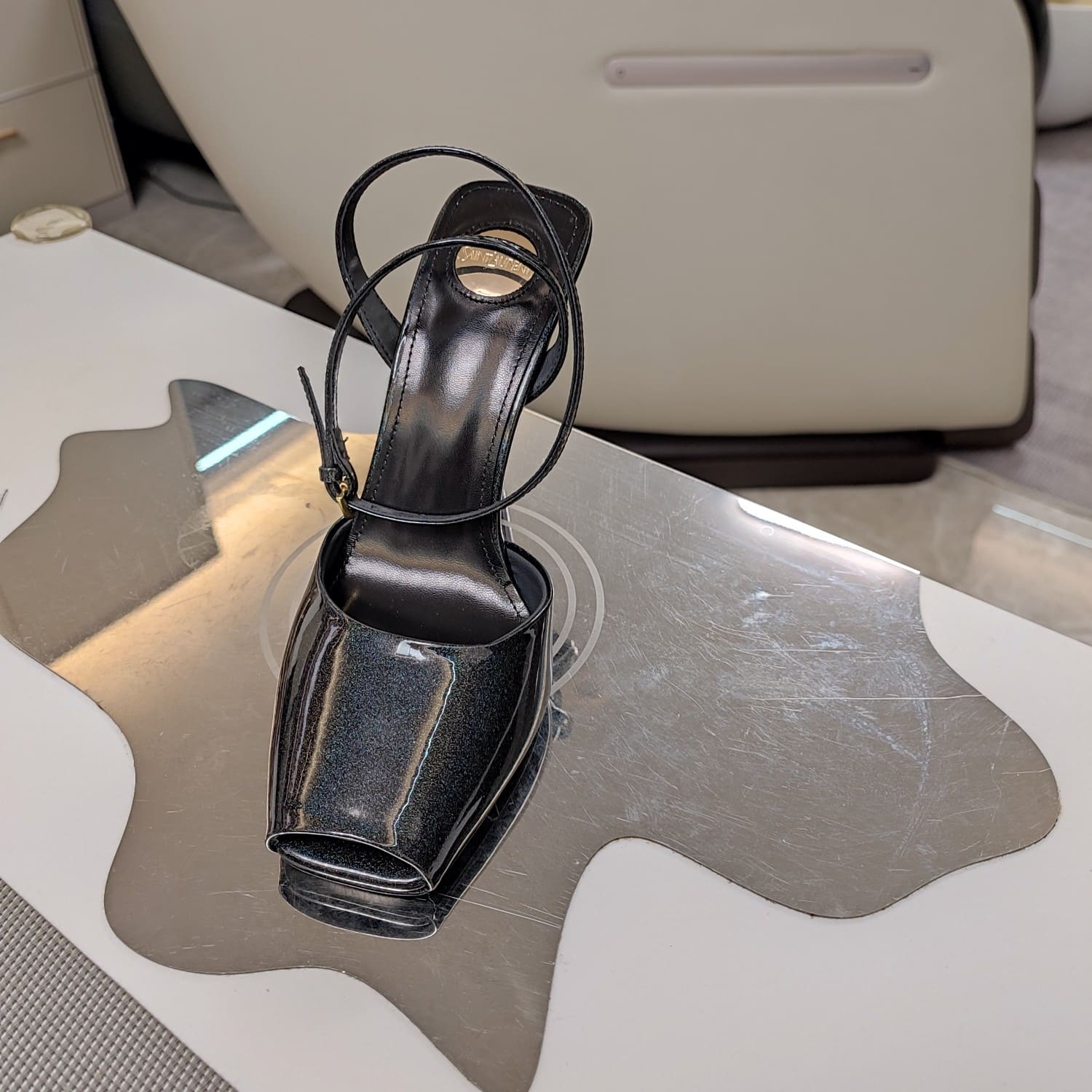 Product Name Saint Laurent Wedge Heel Peep-Toe Sandals صندل سان لوران بكعب ويدج ومقدمة مفتوحة