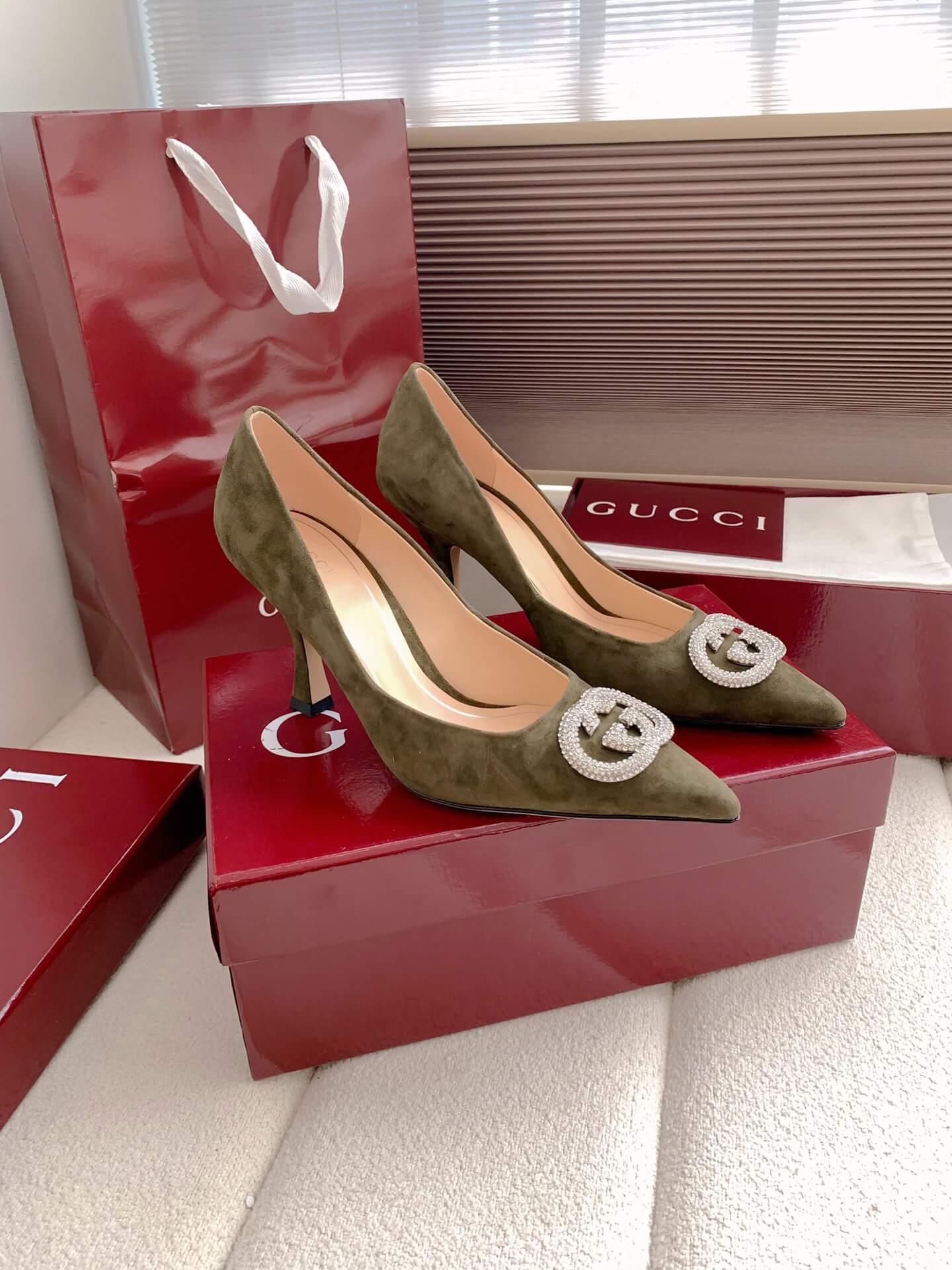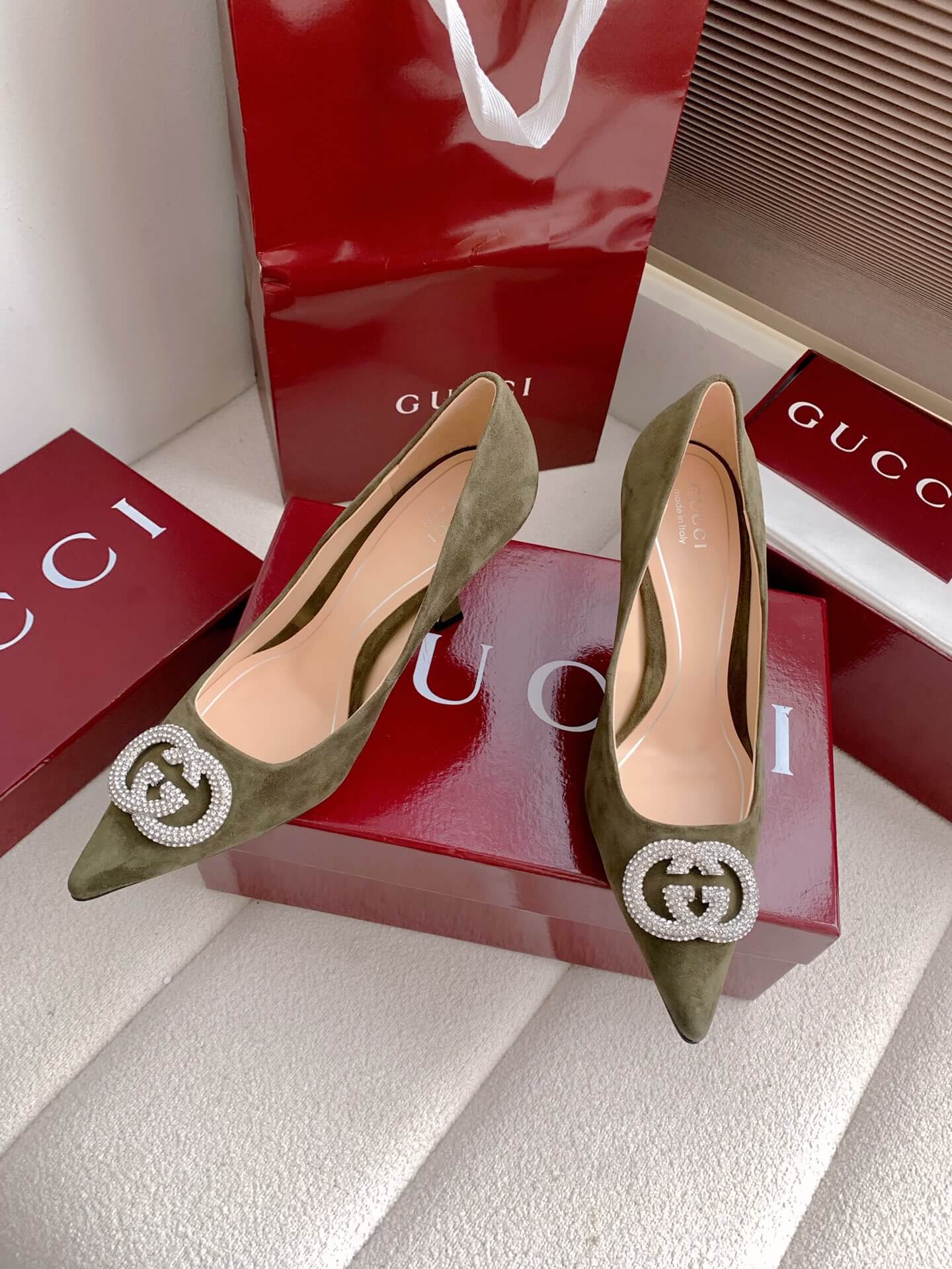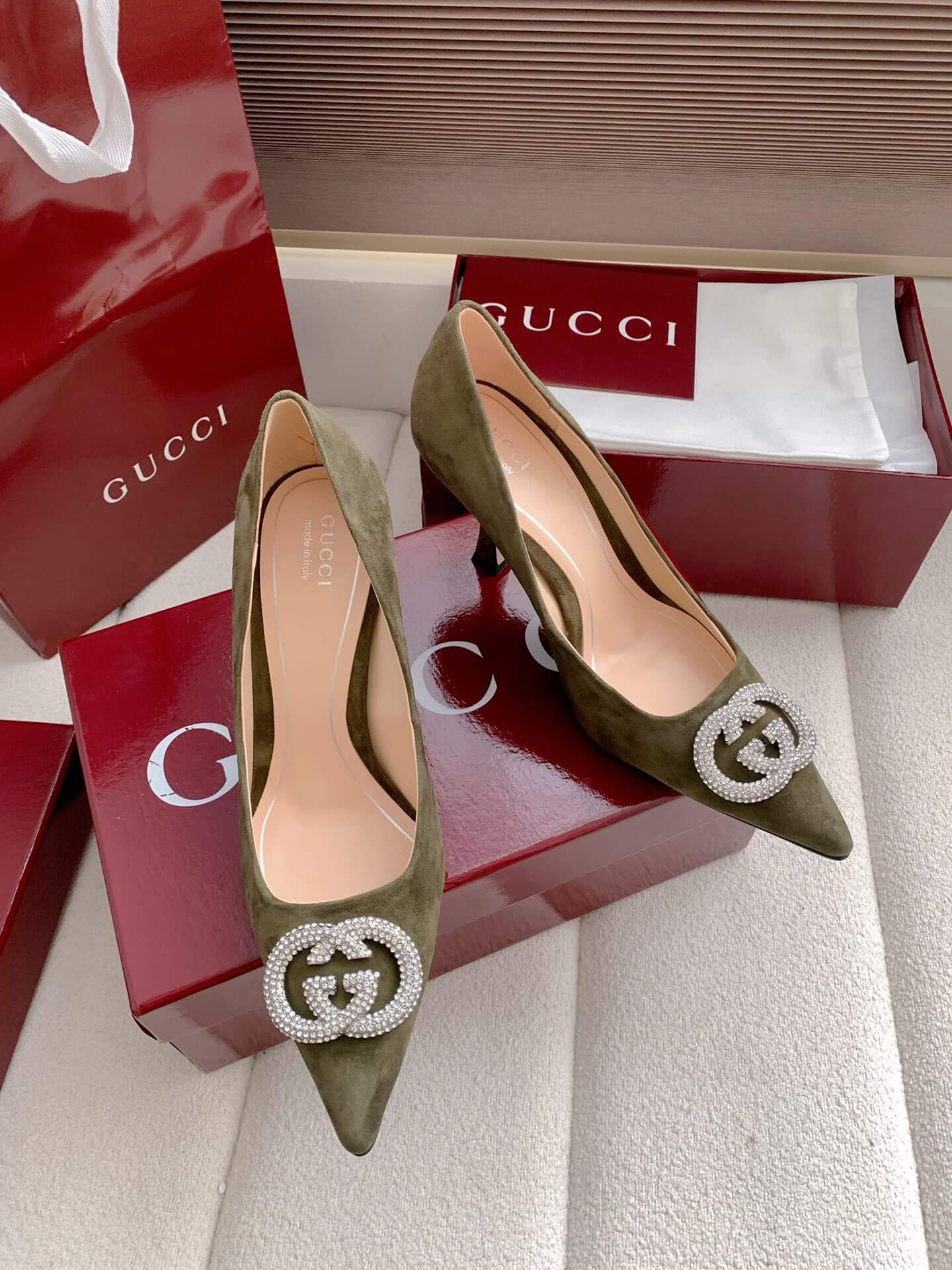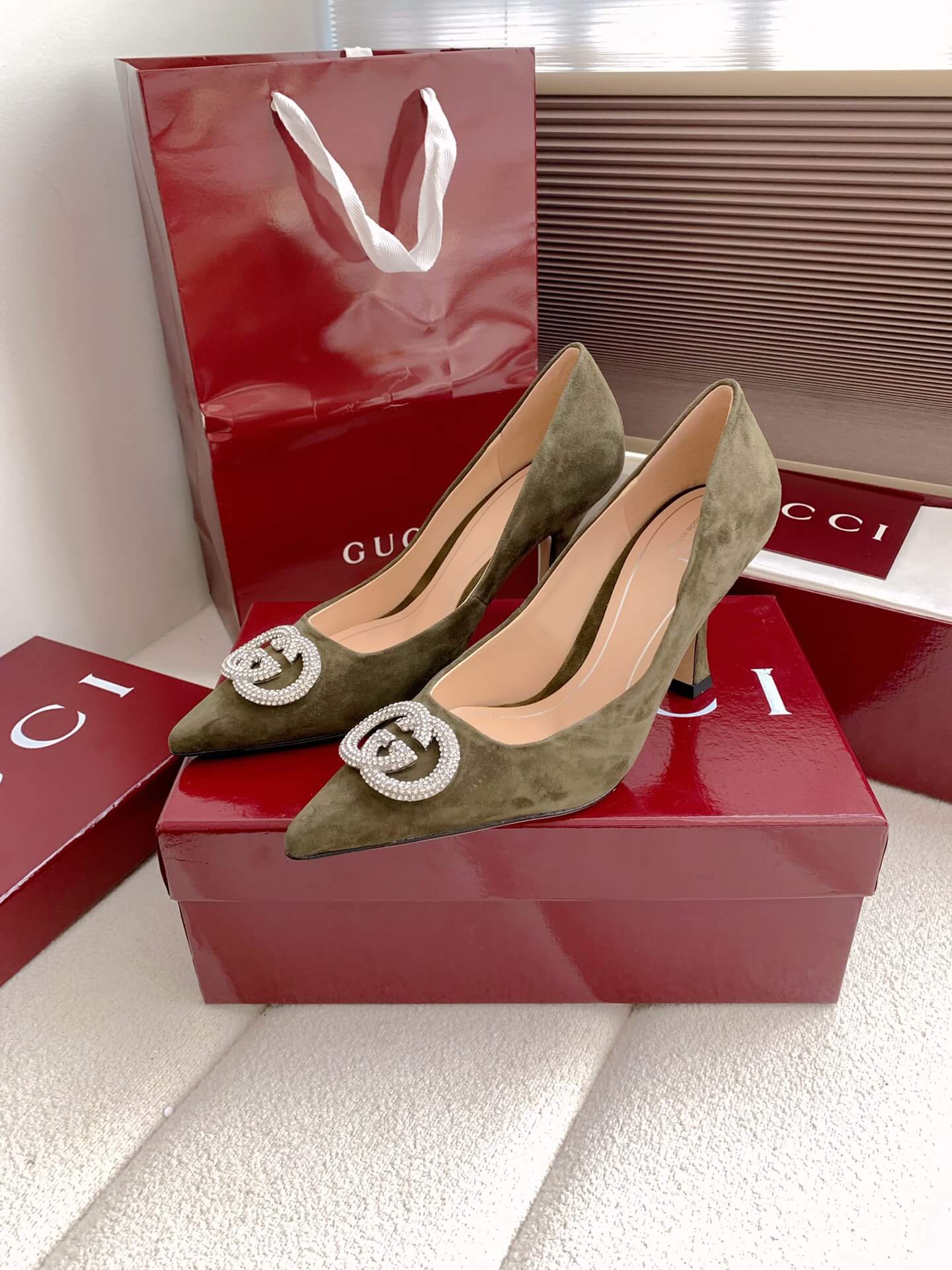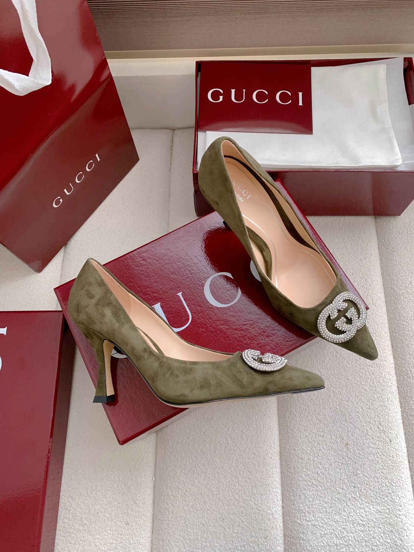 Product Name Women’s pump with crystal Interlocking G (e.g., “Alicia” style) حذاء نسائي بكعب وشعار “إنترلوكينغ جي” كريستالي (مثل طراز “أليسيا”)