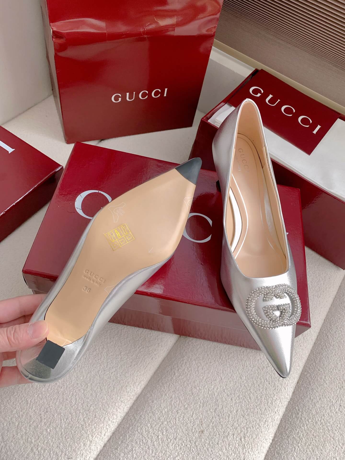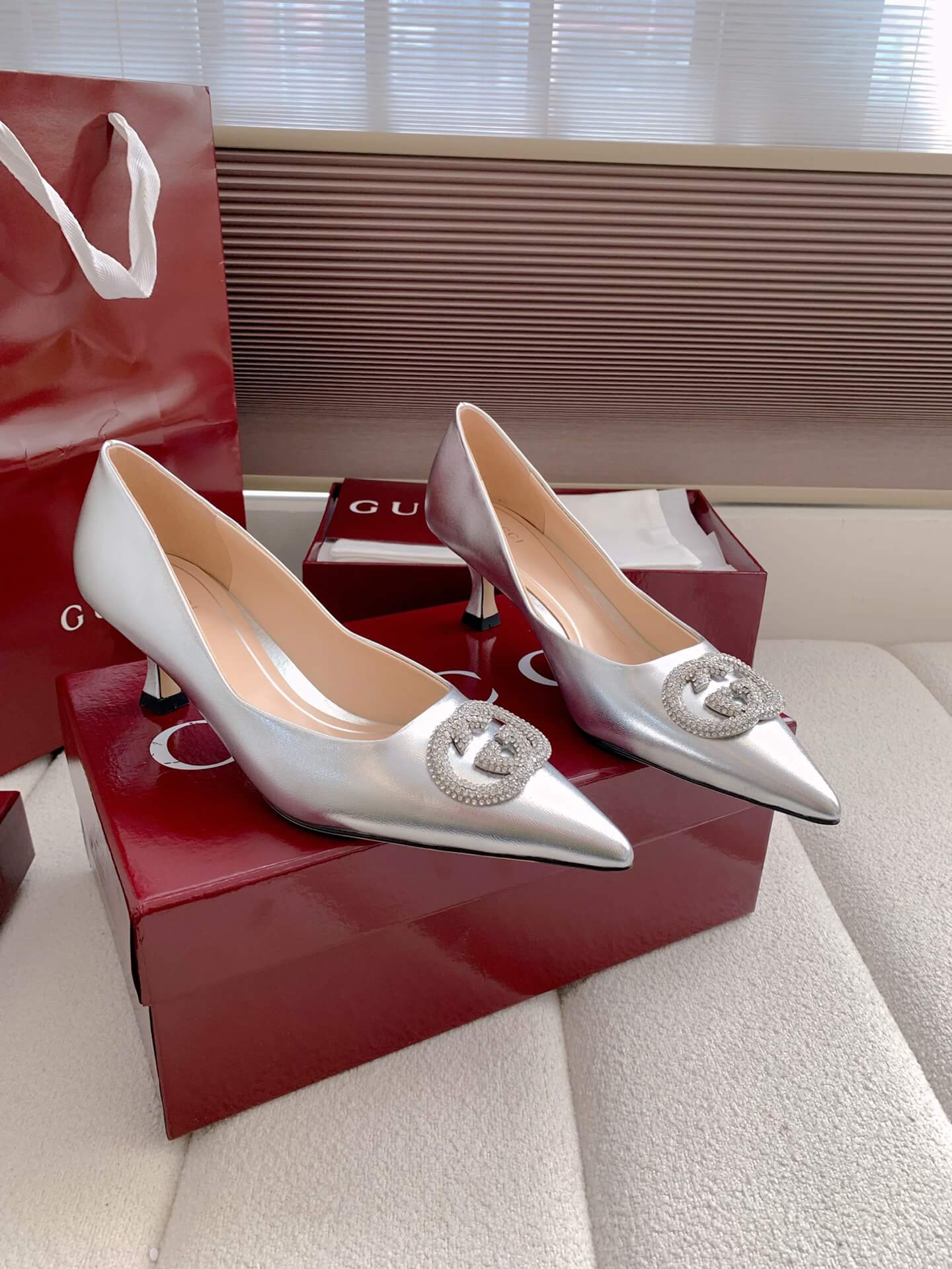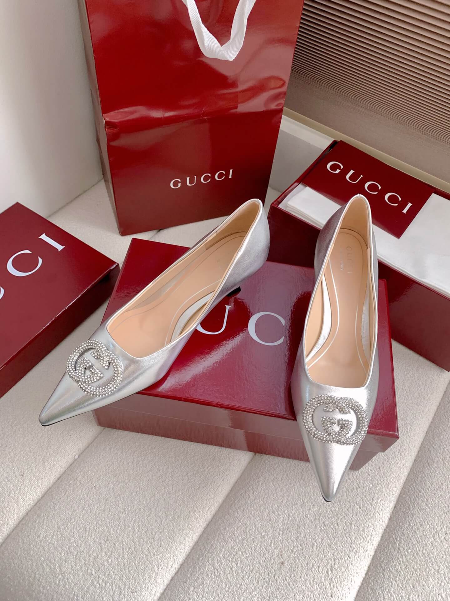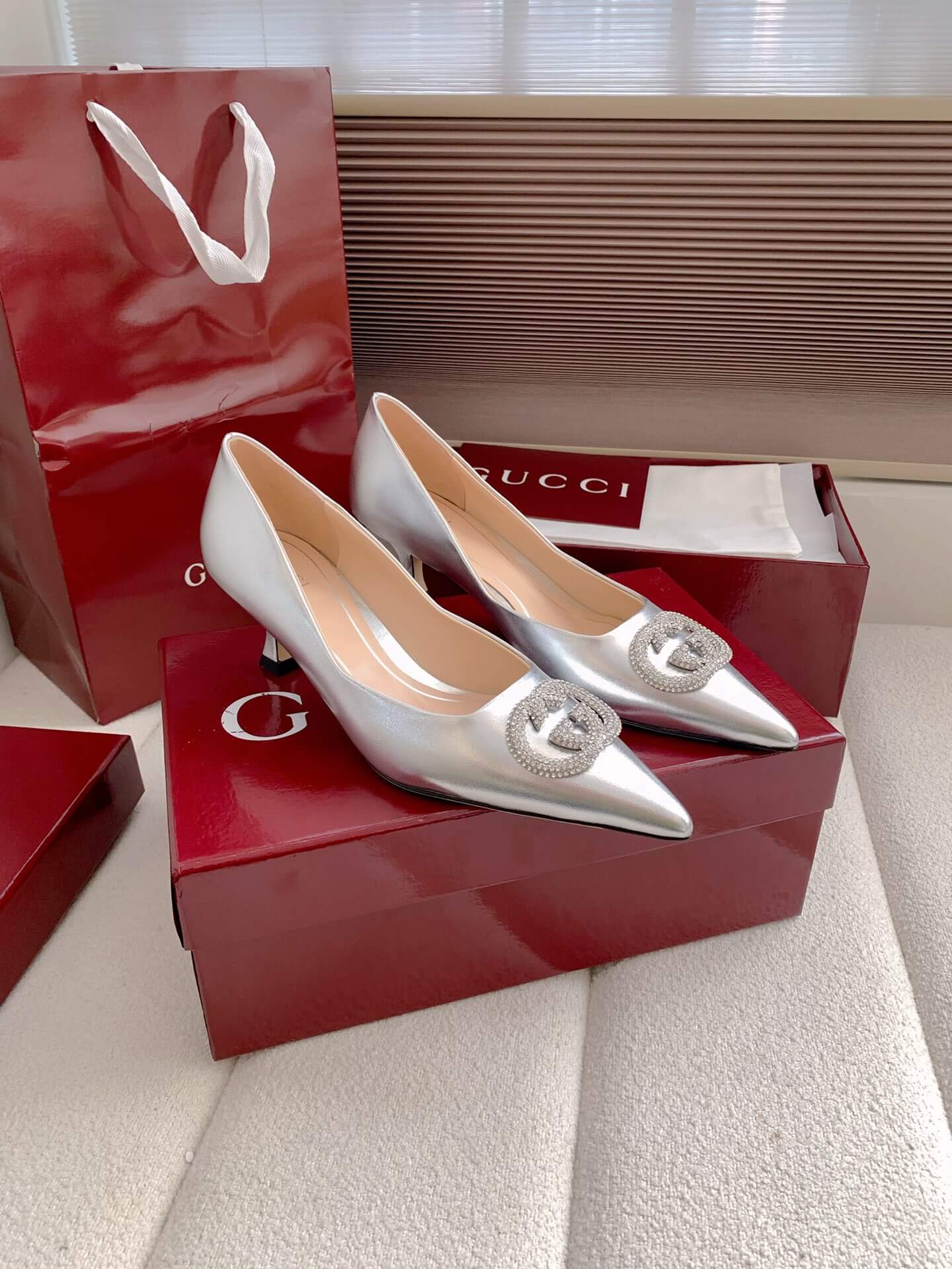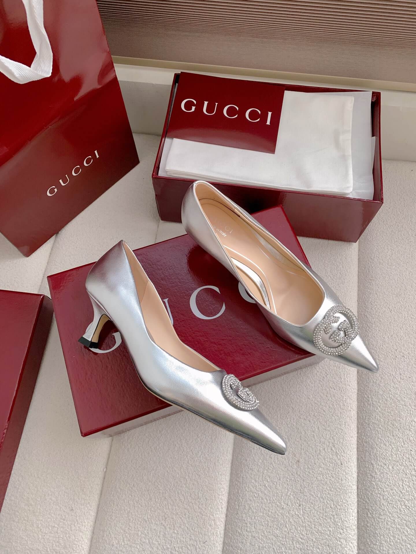 Product NameWomen’s pump with crystal Interlocking G (e.g., “Alicia” style)حذاء نسائي بكعب وشعار “إنترلوكينغ جي” كريستالي (مثل طراز “أليسيا”)