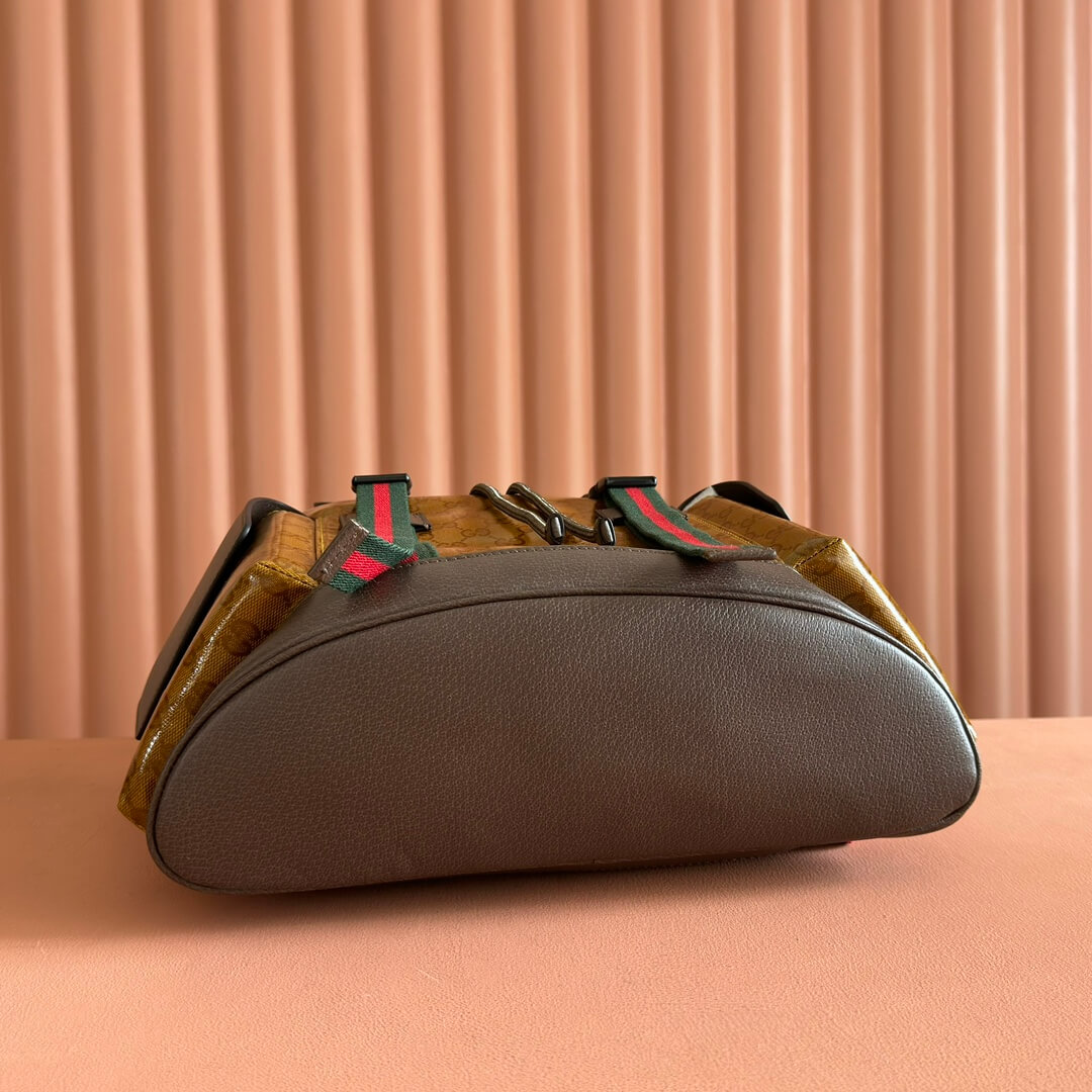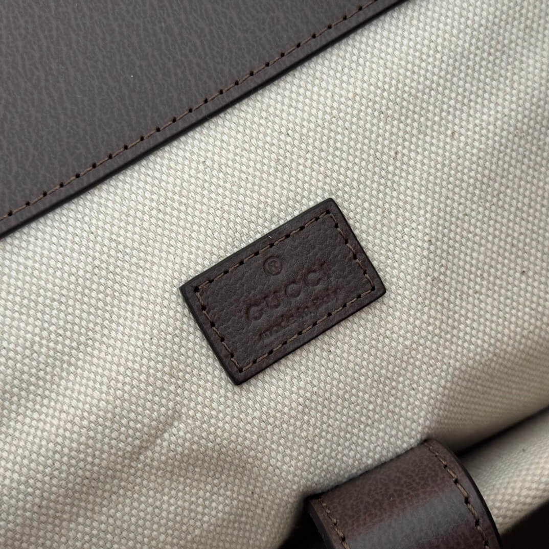 Material Beige and brown GG crystal canvas, brown leather trim, cotton and linen lining قماش كريستال GG بيج وبني، حواف جلدية بنية، بطانة من القطن والكتان