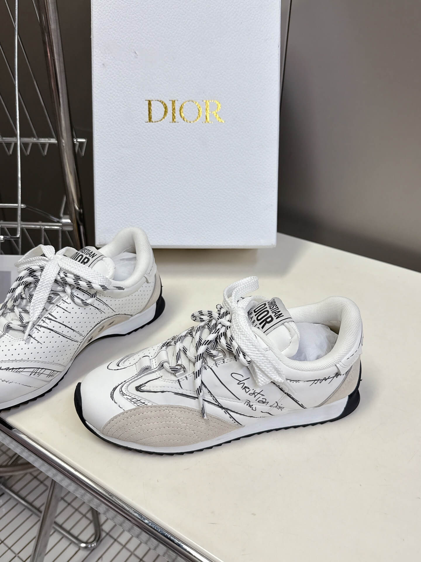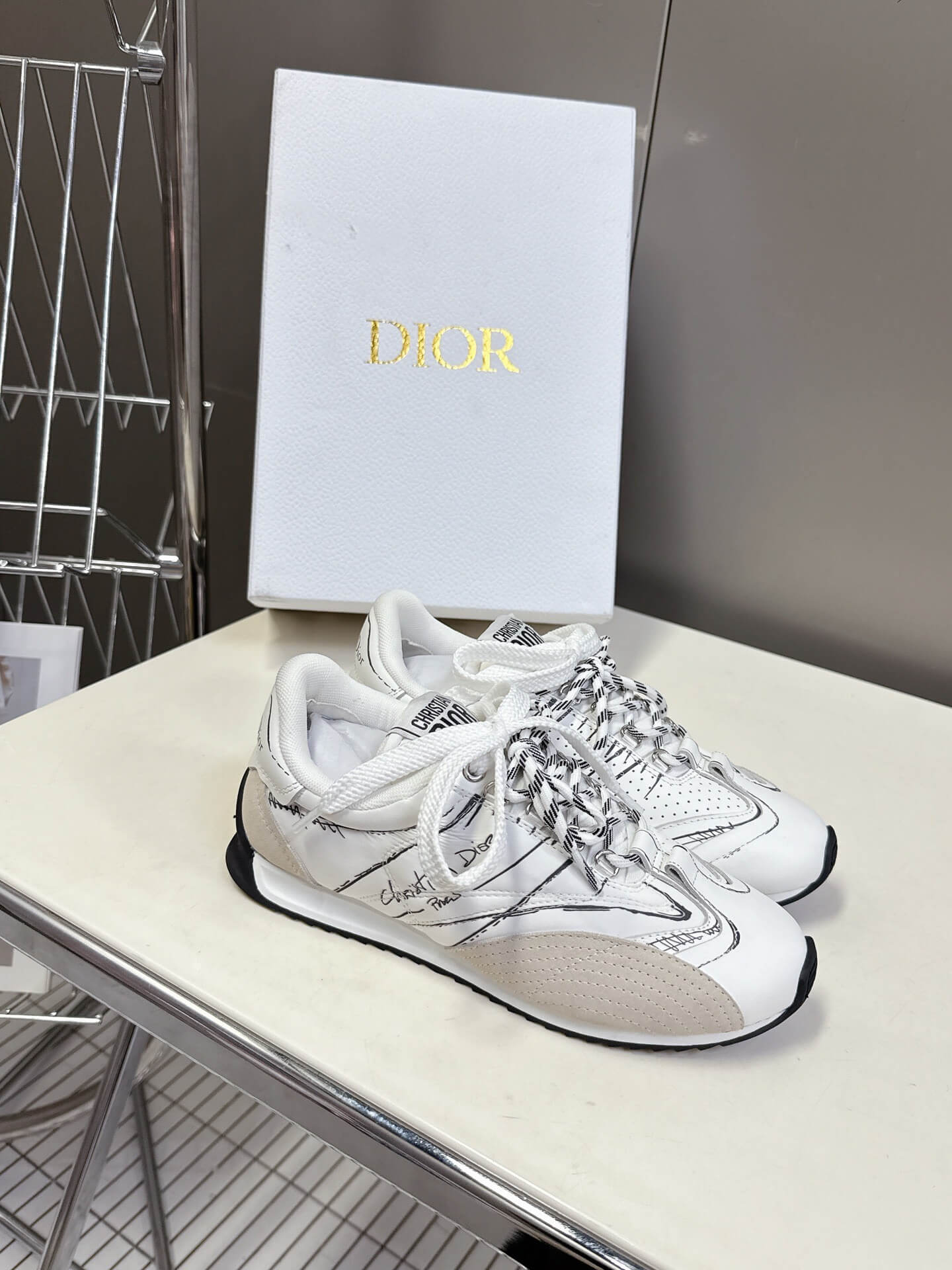 Product Name Dior Spring/Summer 2025 Runway Graffiti Sketch German Training Shoes, Cortez Style مجموعة ديور لربيع وصيف 2025: أحذية تدريب ألمانية بتصميم “غرافيتي سكتش”، بنمط كورتيز