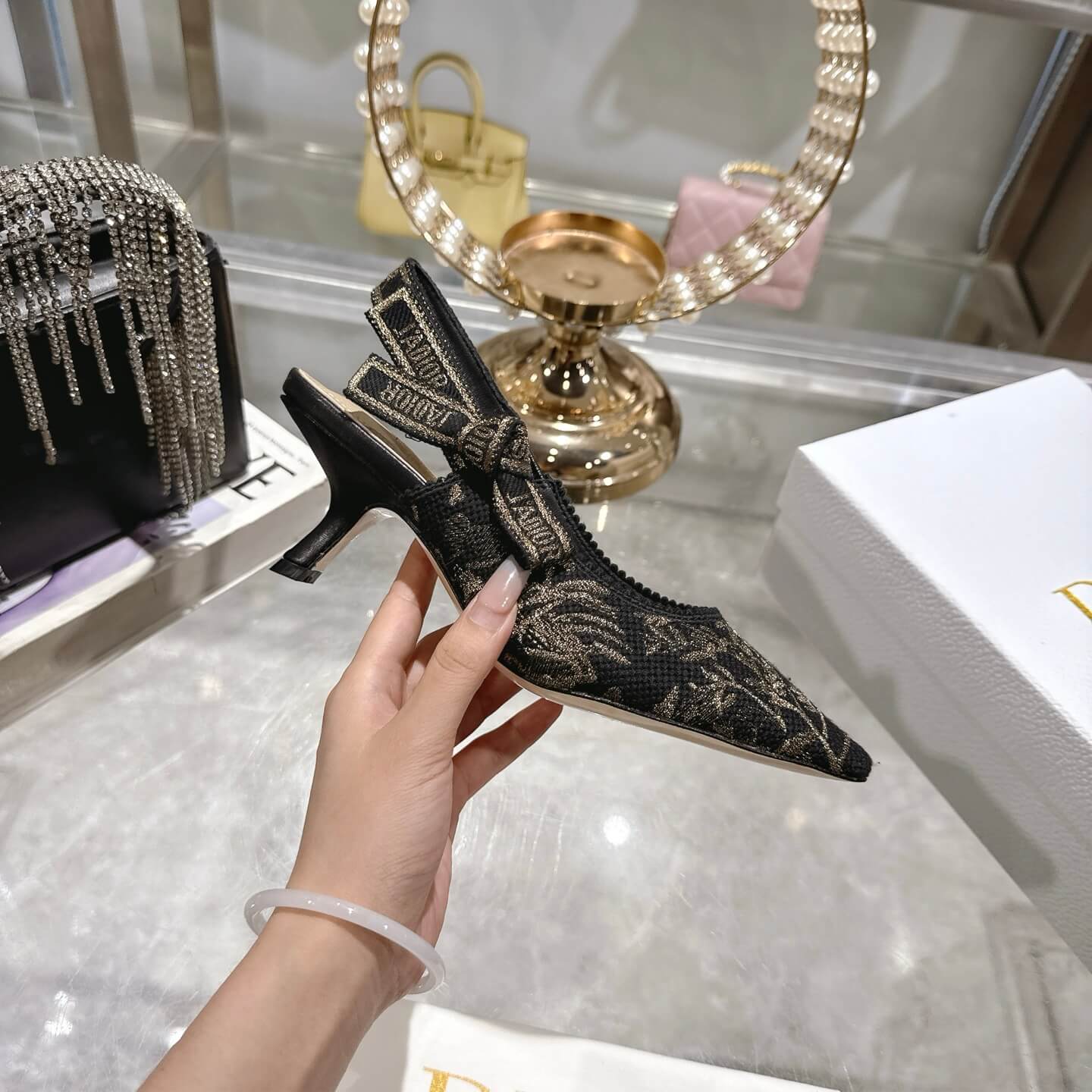 Product Name: J’Adior Slingback Pump (e.g., Dior Chardons motif) حذاء “ج’ادور” الخلفي بكعب (على سبيل المثال، بنمط شوك ديور)