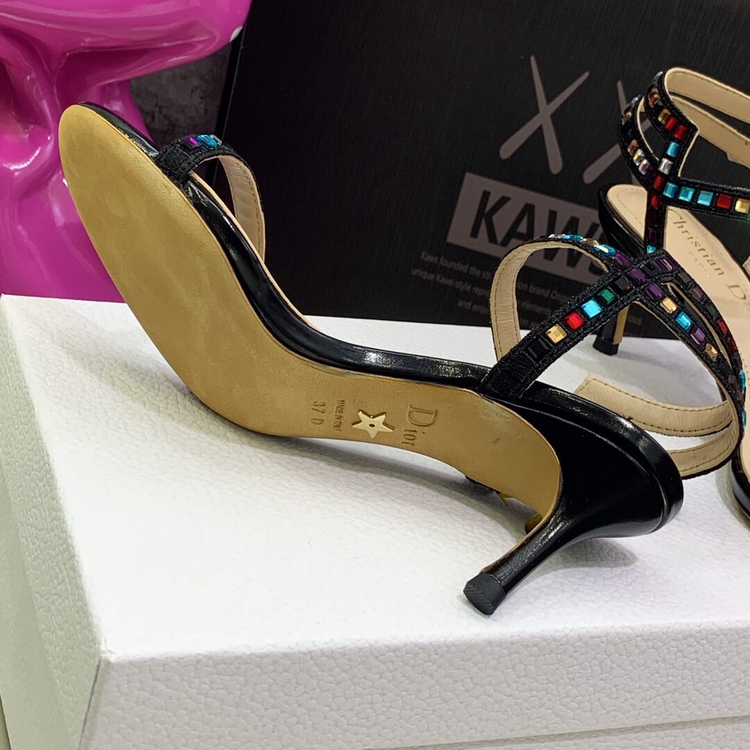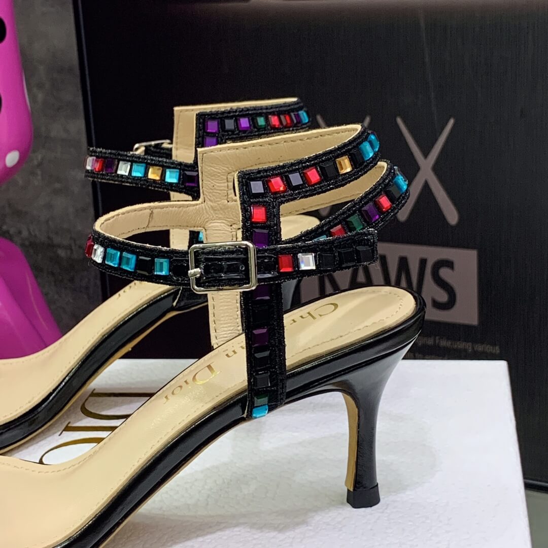 Product Name Dior Dway 2022 Spring/Summer New Arrival Rhinestone Round Toe High-Heeled Shoes صندل ديور دواى 2022 الجديد لربيع/صيف: حذاء بكعب عالٍ ومقدمة مستديرة ومرصع بالراينستون