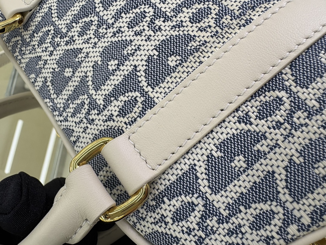 Material / الخامة Blue Oblique Printed Fabric & Tonal Leather قماش أوبليك أزرق وتفاصيل جلدية متناغمة