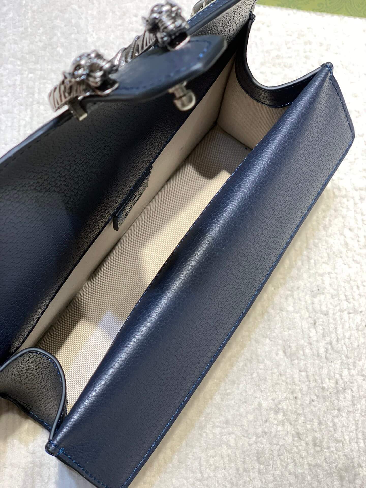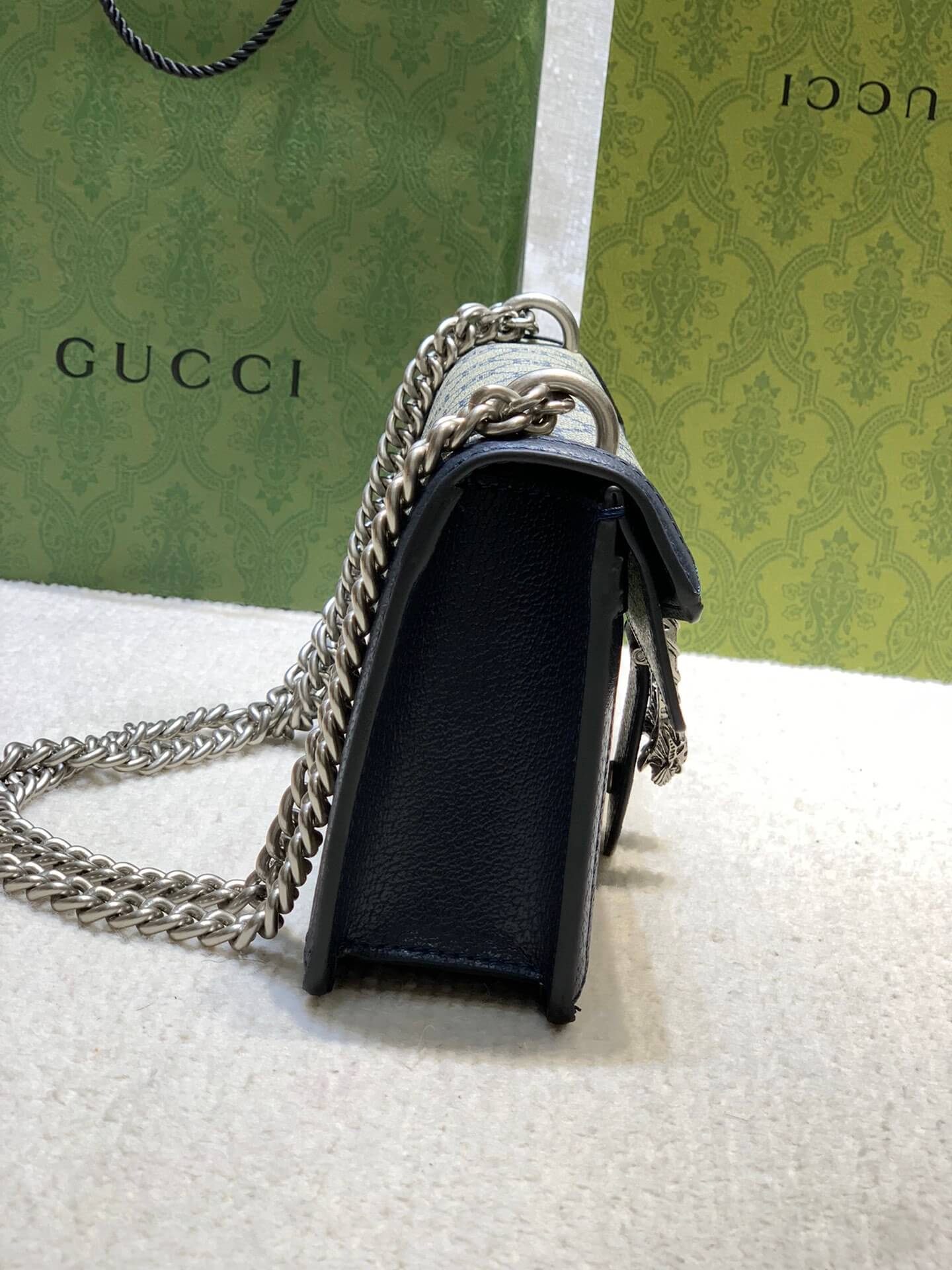 Material / المادةGG Supreme Canvas & Blue Leather Trimقماش GG Supreme مع حواف جلدية زرقاء