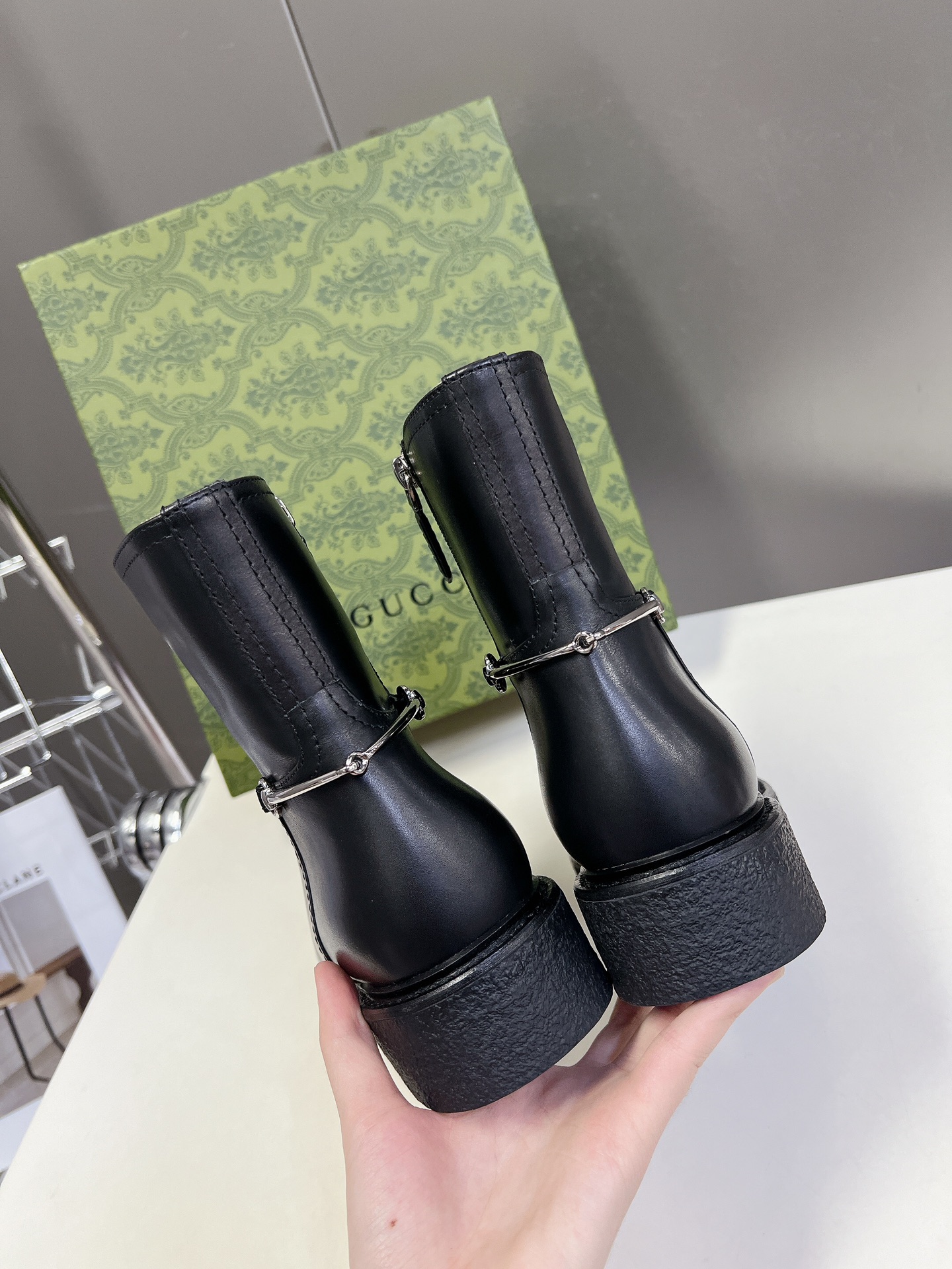 Product Name / اسم المنتج Women’s ankle boot with Horsebit (approximate official name) حذاء جوتشي (GUCCI) شتوي خريفي بنمط أحذية الفروسية