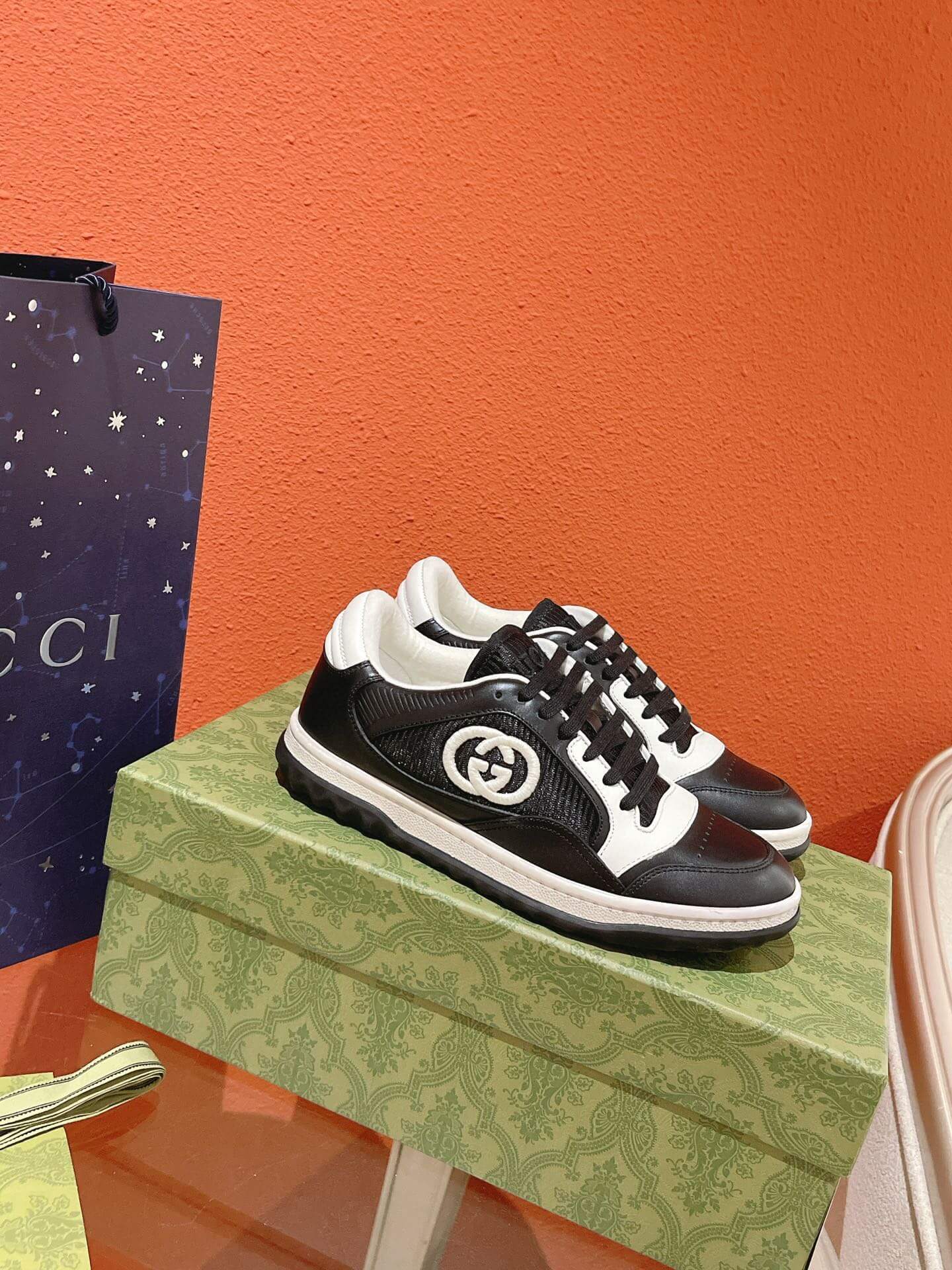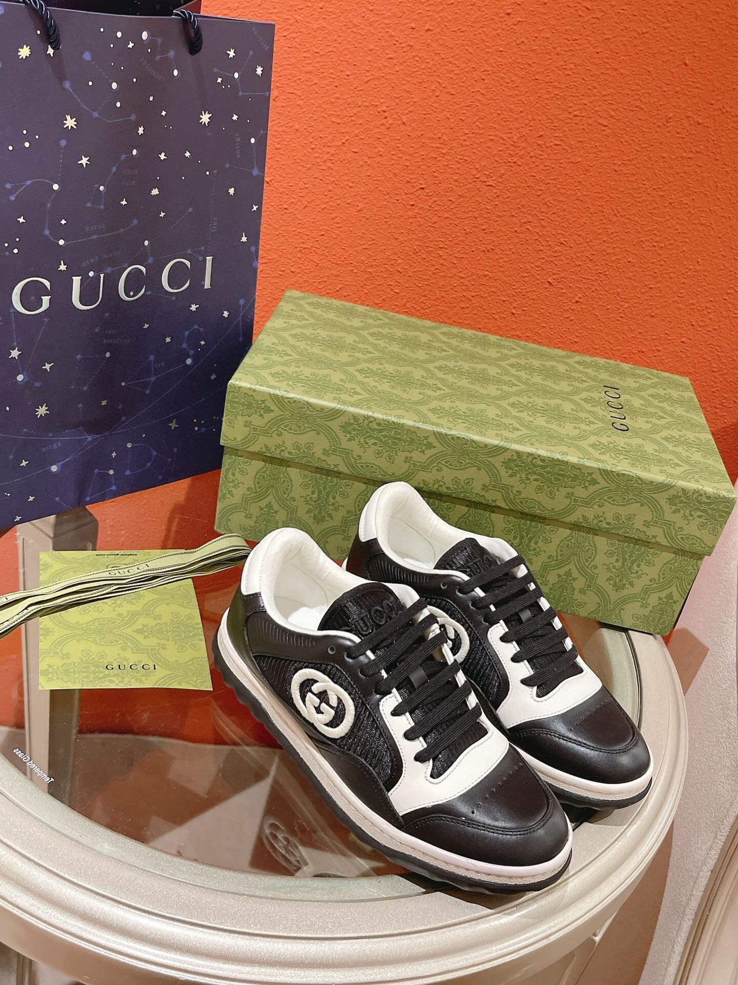 Description A comfortable, stylish luxury sneaker blending heritage logos with contemporary design, suitable for everyday wear. حذاء رياضي فاخر مريح وأنيق يمزج بين شعارات غوتشي التراثية والتصميم المعاصر، ومناسب للارتداء اليومي.