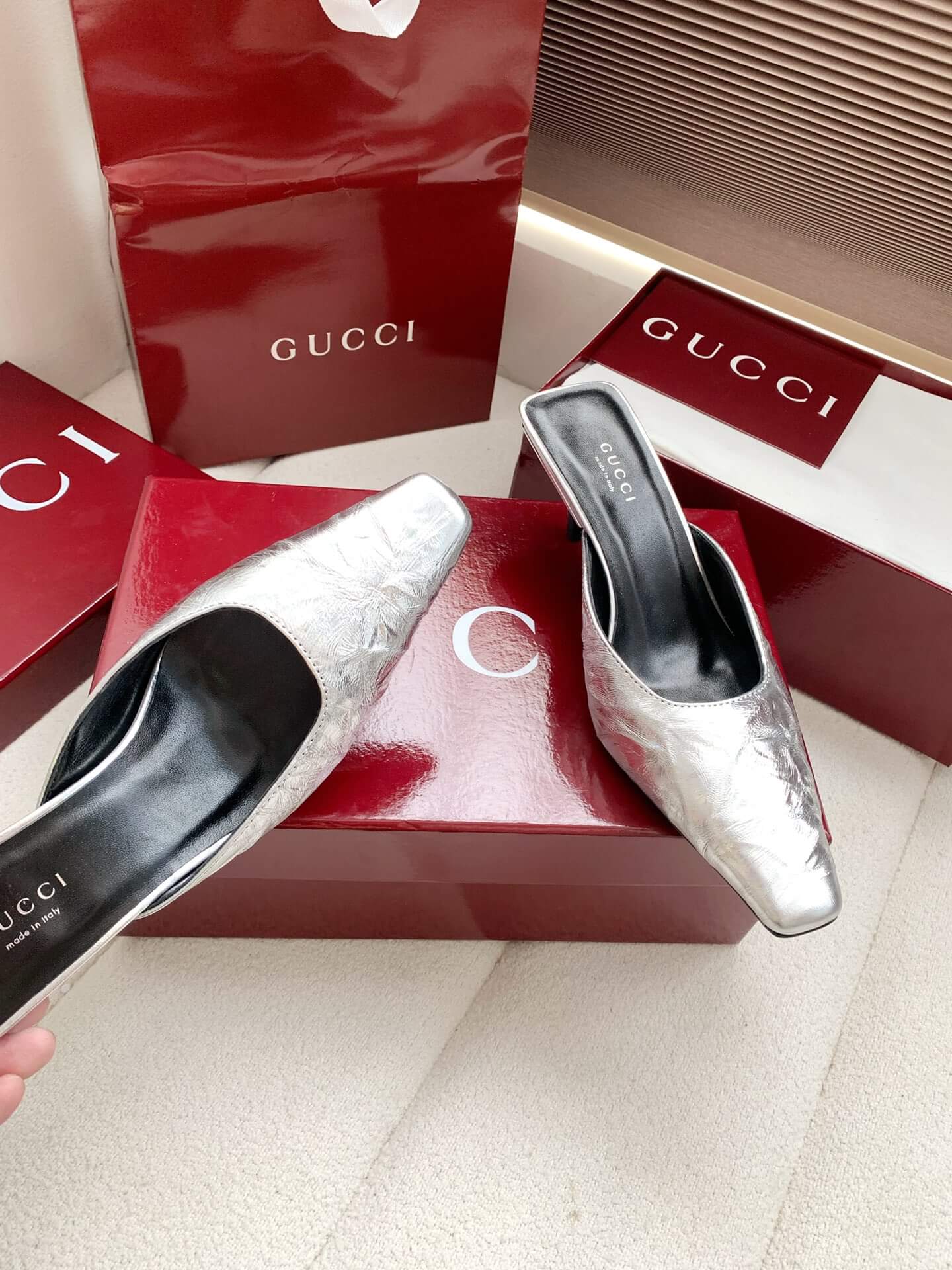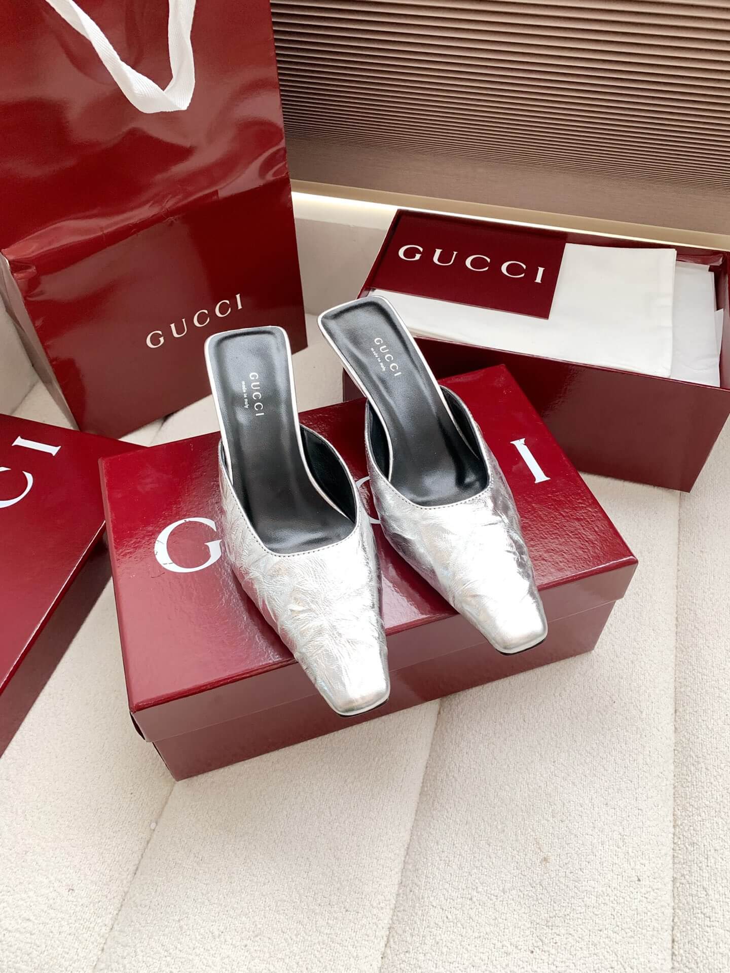 Product Name Gucci Metallic Fabric Mules (e.g., “Mallory” or “97”) حذاء غوتشي من القماش المعدني (مثل “مالوري” أو “97”)
