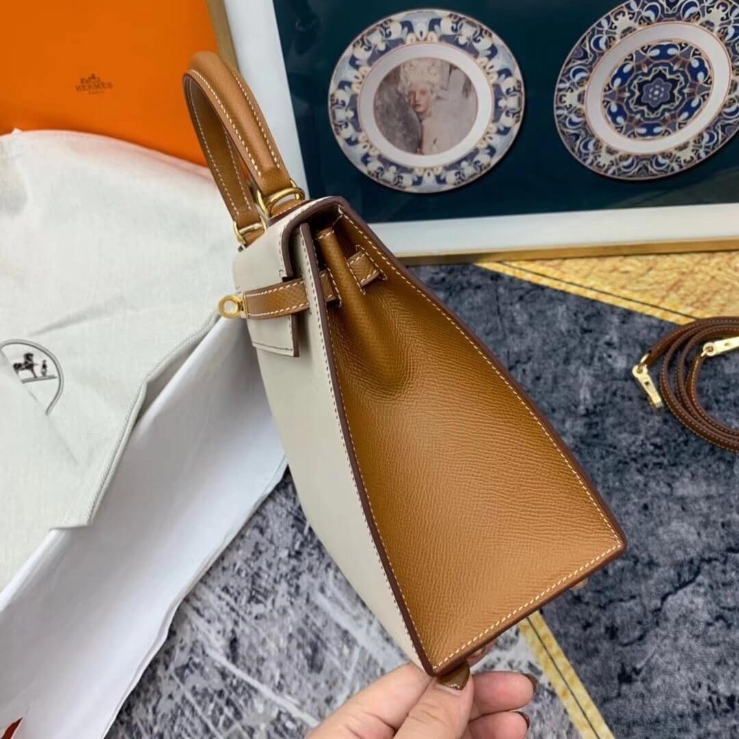 Features: Two-tone design, compact 25 cm size, gold hardware, structured shape, top handle with optional shoulder strap.