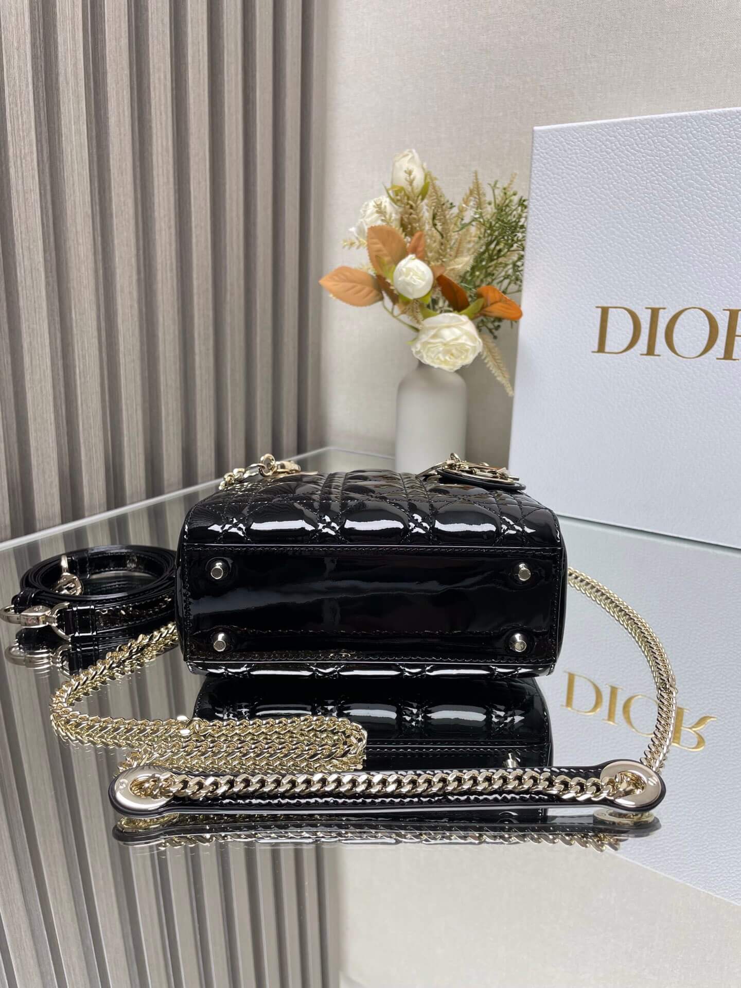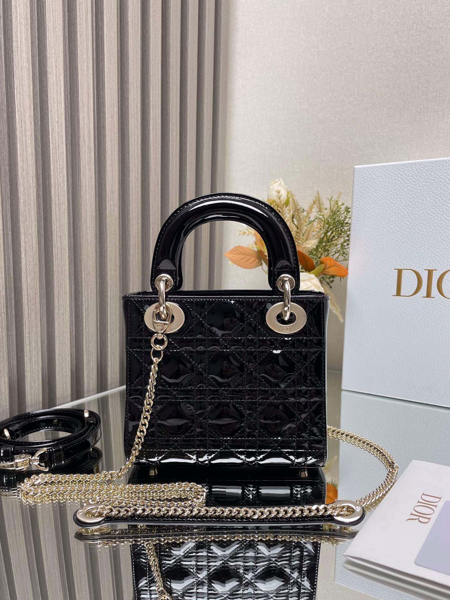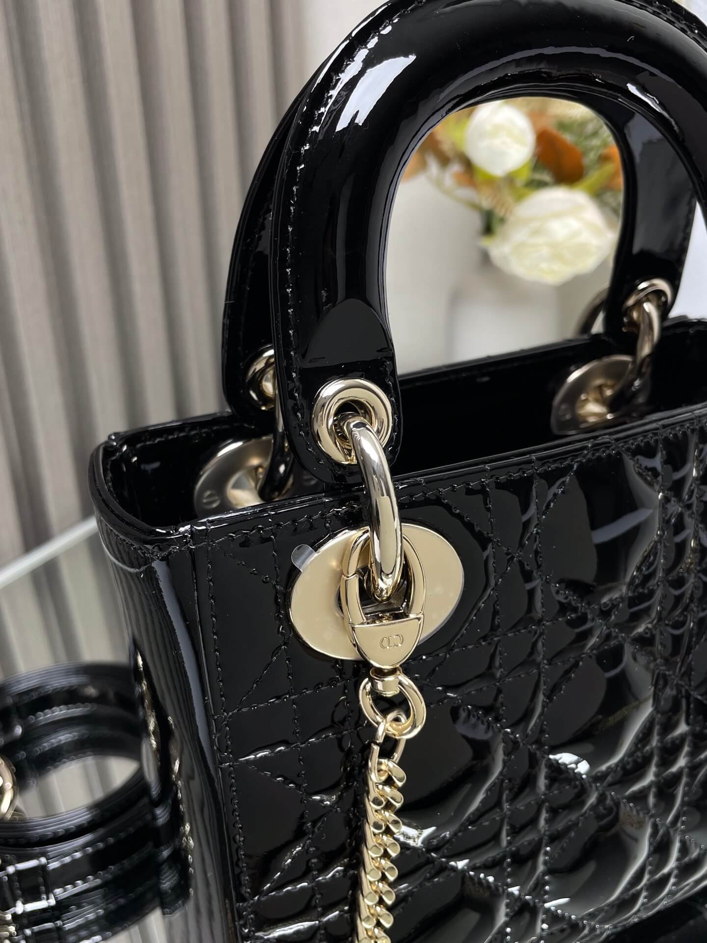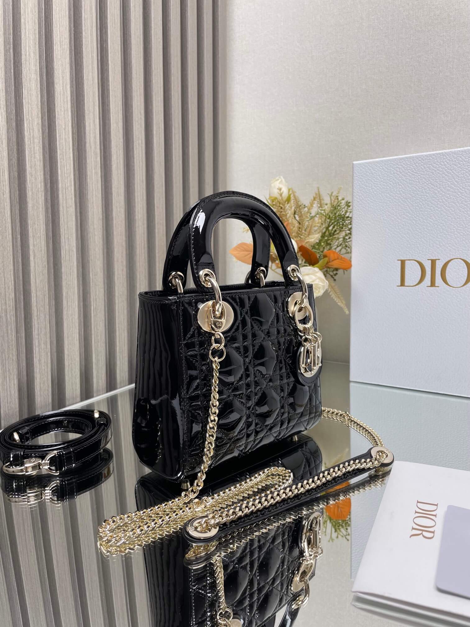 Description A must-have black patent lambskin bag combining elegance with modern style, offering superb quality and practical daily storage capacity. حقيبة أساسية من جلد الحمل الأسود اللامع تجمع بين الأناقة والأسلوب العصري، توفر جودة فائقة وسعة تخزين يومية عملية.