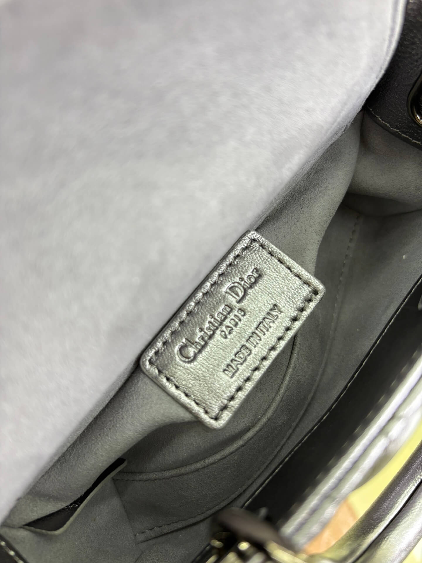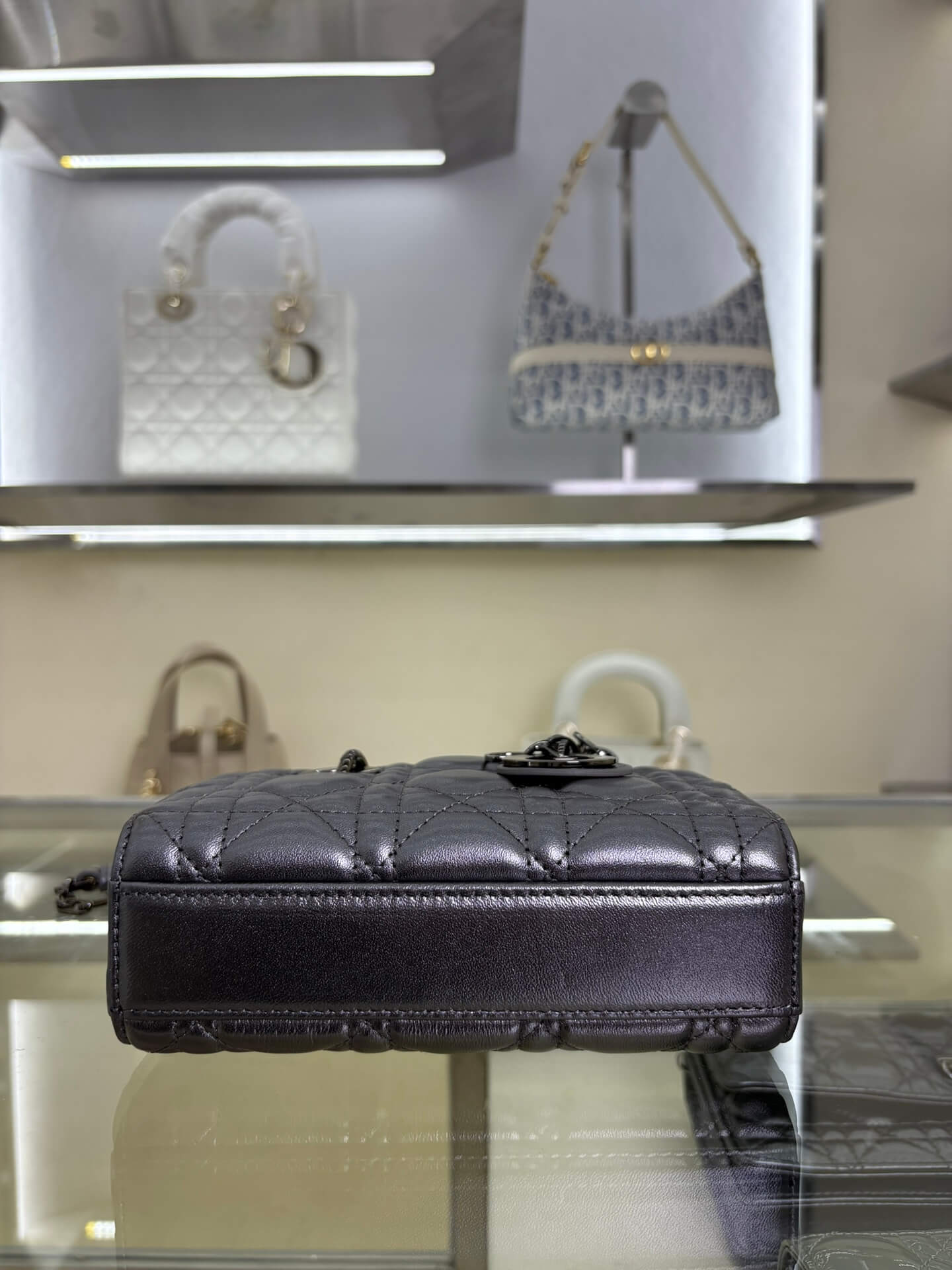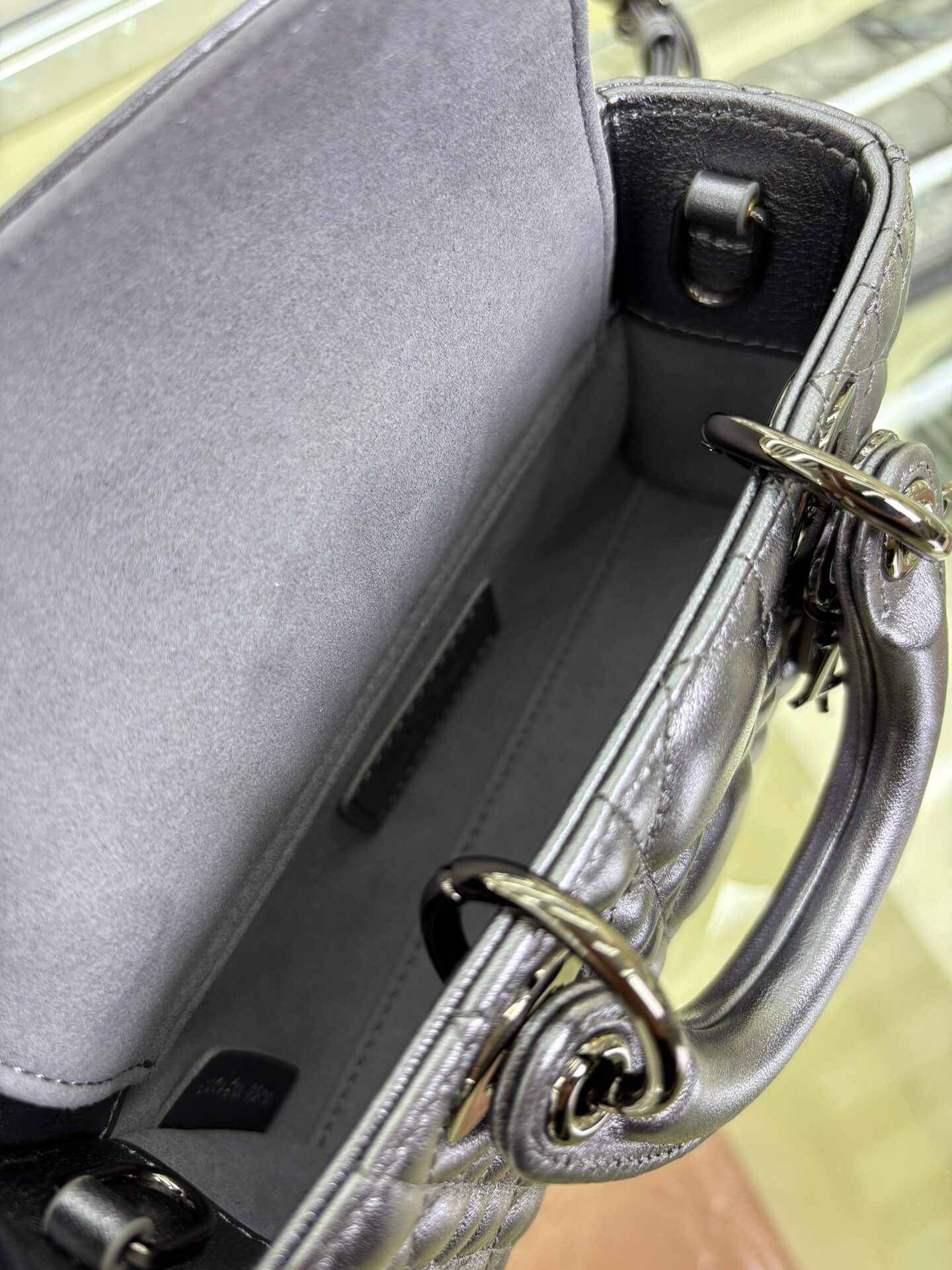 Description A sophisticated gunmetal patent leather bag featuring iconic cannage stitching, versatile for hand or crossbody wear. حقيبة راقية من الجلد اللامع بلون “غنميتال” تتميز بخياطة الكاناج الأيقونية، متعددة الاستخدامات للحمل باليد أو كروس بودي.