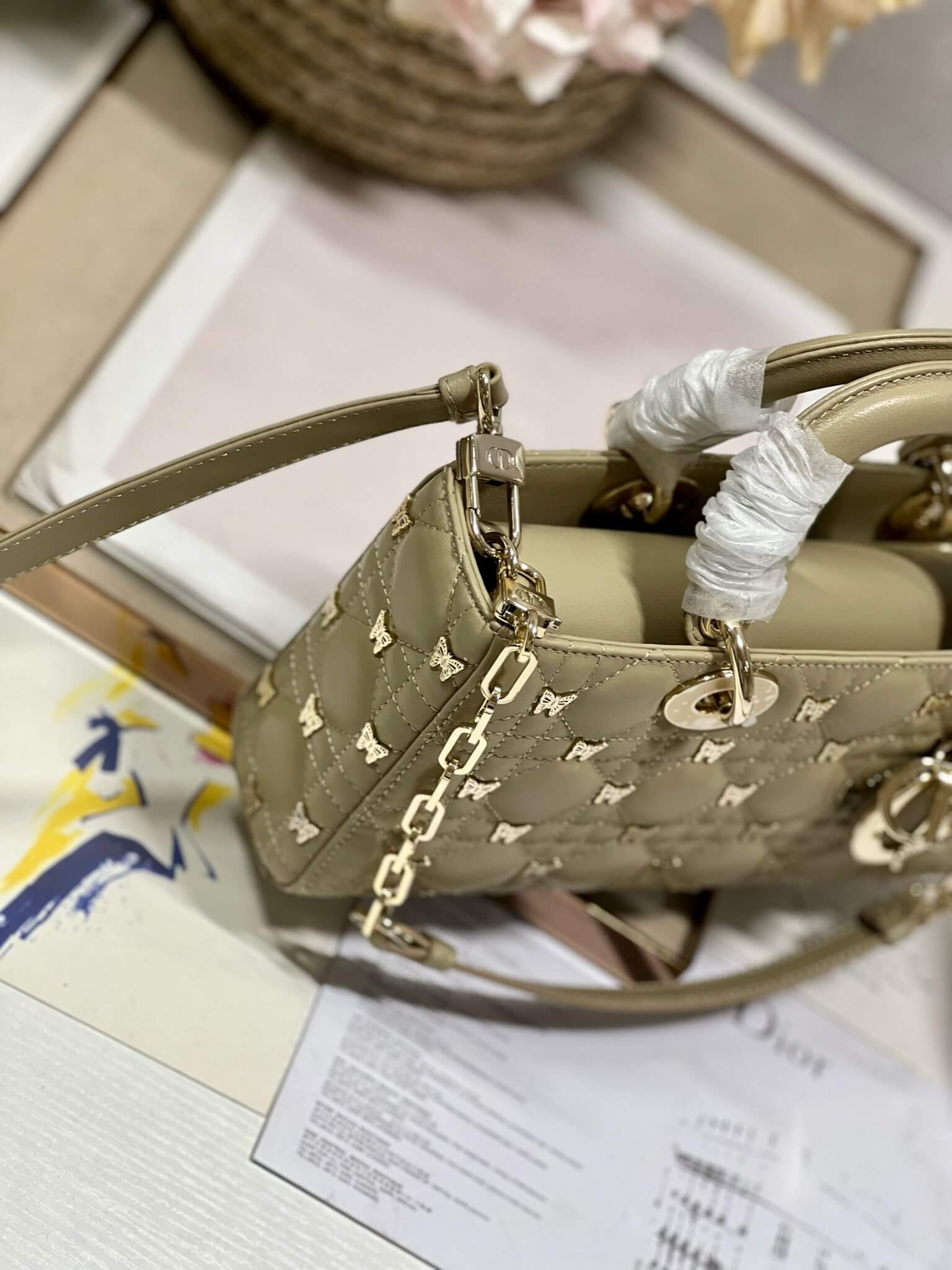 Product Name / اسم المنتج Medium LADY D-JOY Handbag “Butterfly Almond” حقيبة يد متوسطة ليدي دي-جوي “باترفلاي آلموند”