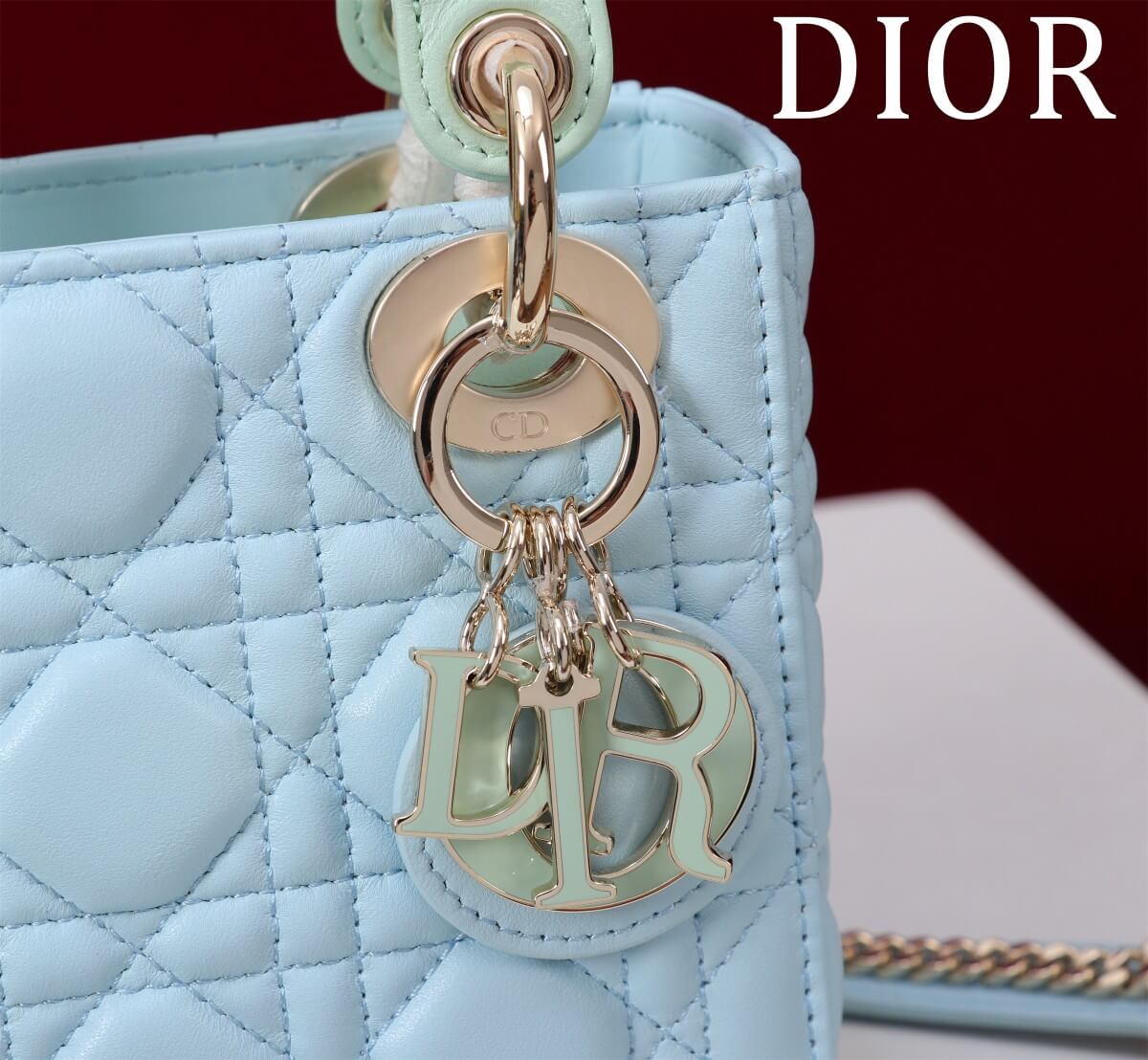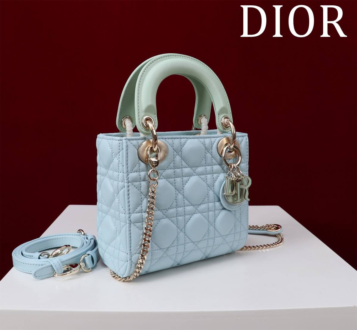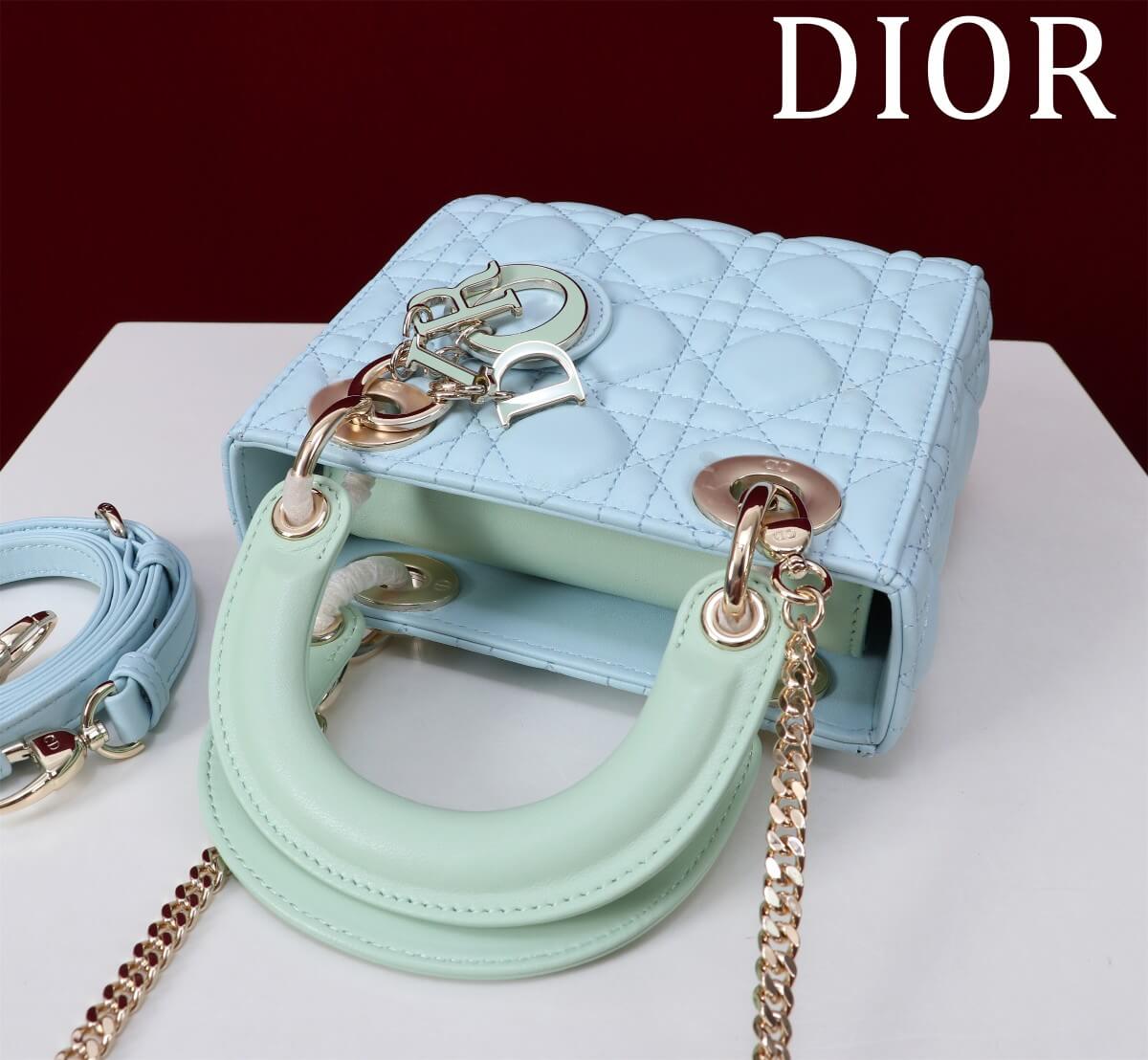 Description / الوصف A 2025 boutique mini Lady Dior in two-color lambskin with a functional two-compartment layout. حقيبة ليدي ديور ميني طراز ٢٠٢٥ بجودة البوتيك، بتصميم عملي من مقصورتين وجلد حمل بلونين.