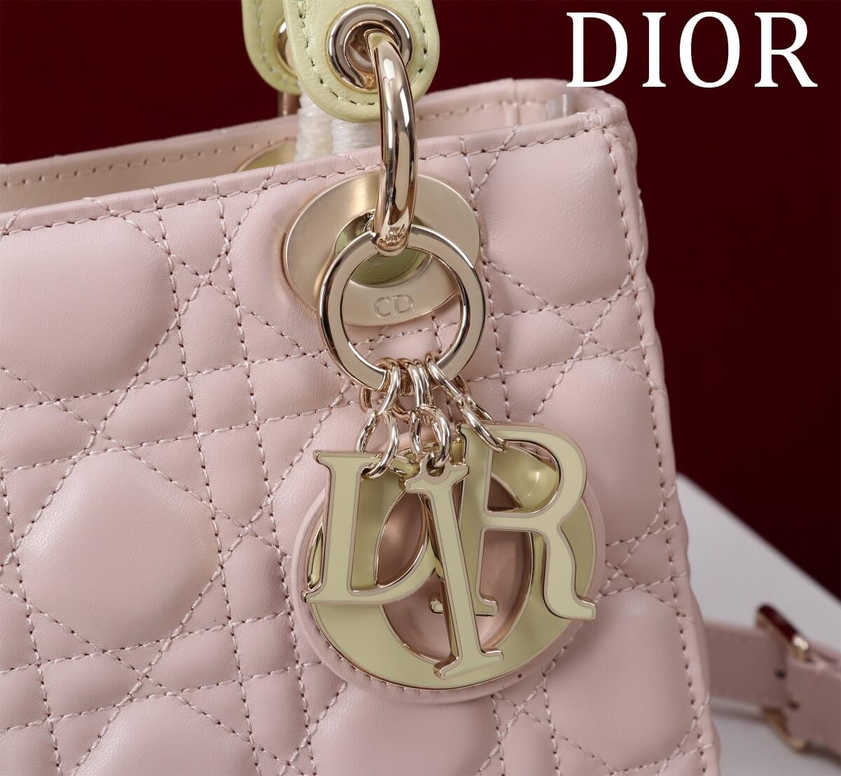 Description / الوصف A top-grade Lady Dior bag in color-block lambskin with four practical compartments and an elegant enamel buckle. حقيبة ليدي ديور مستوردة عالية الجودة من جلد الحمل الملون مع أربع مقصورات عملية وإبزيم مينا أنيق.