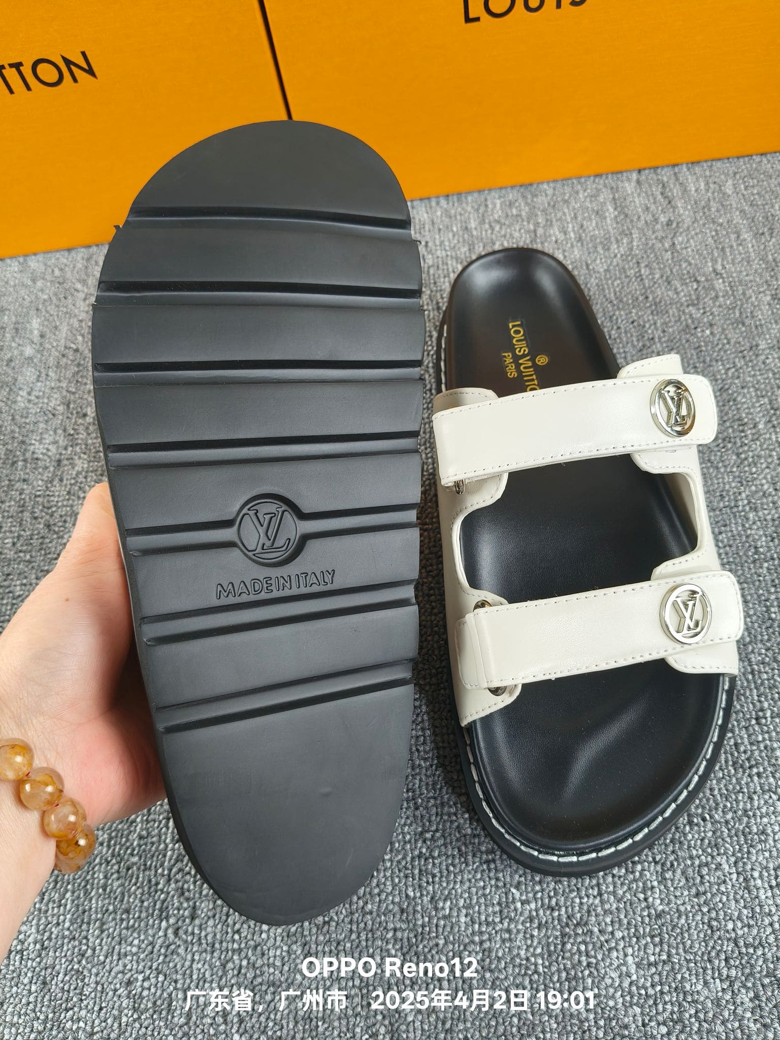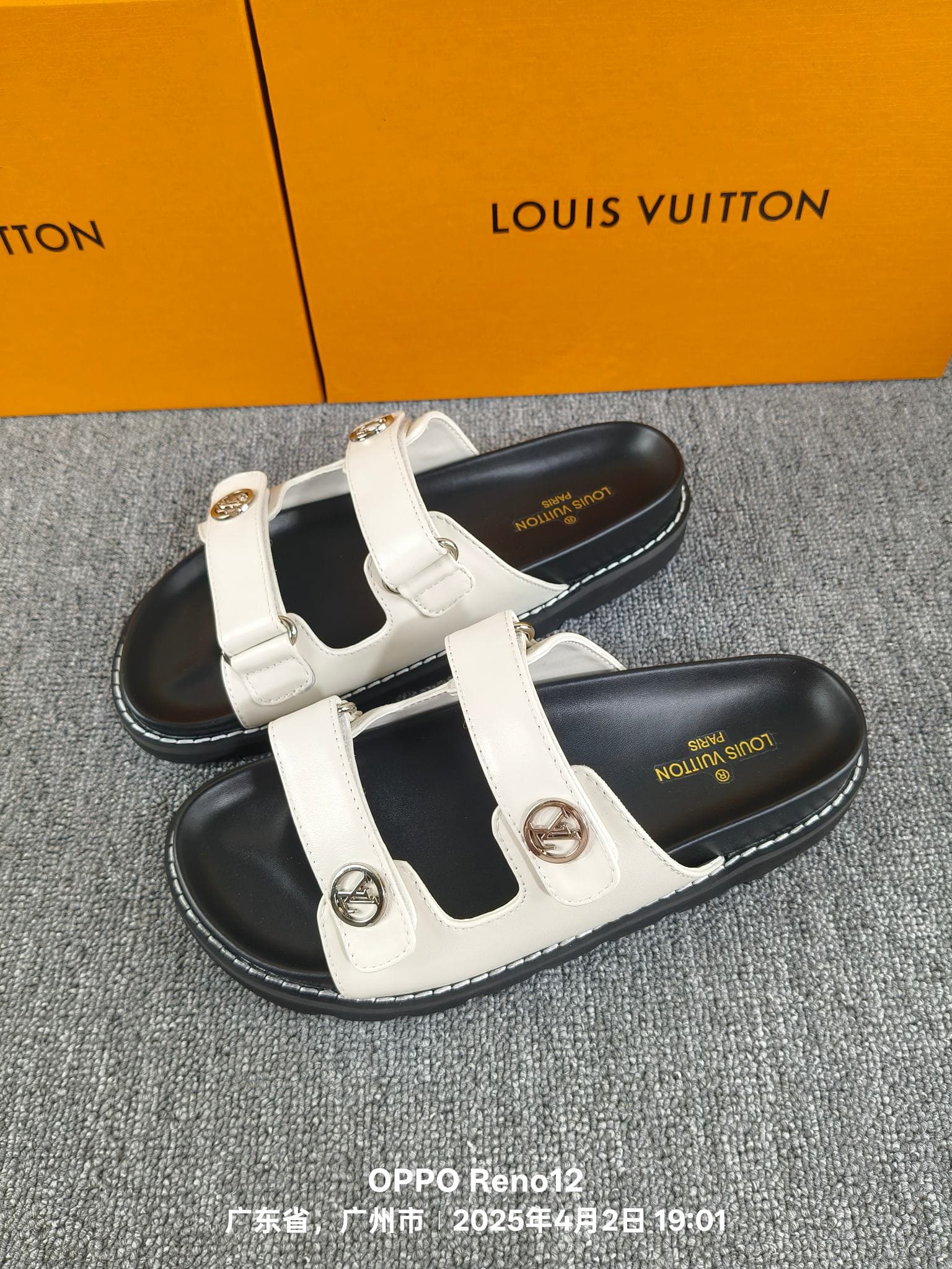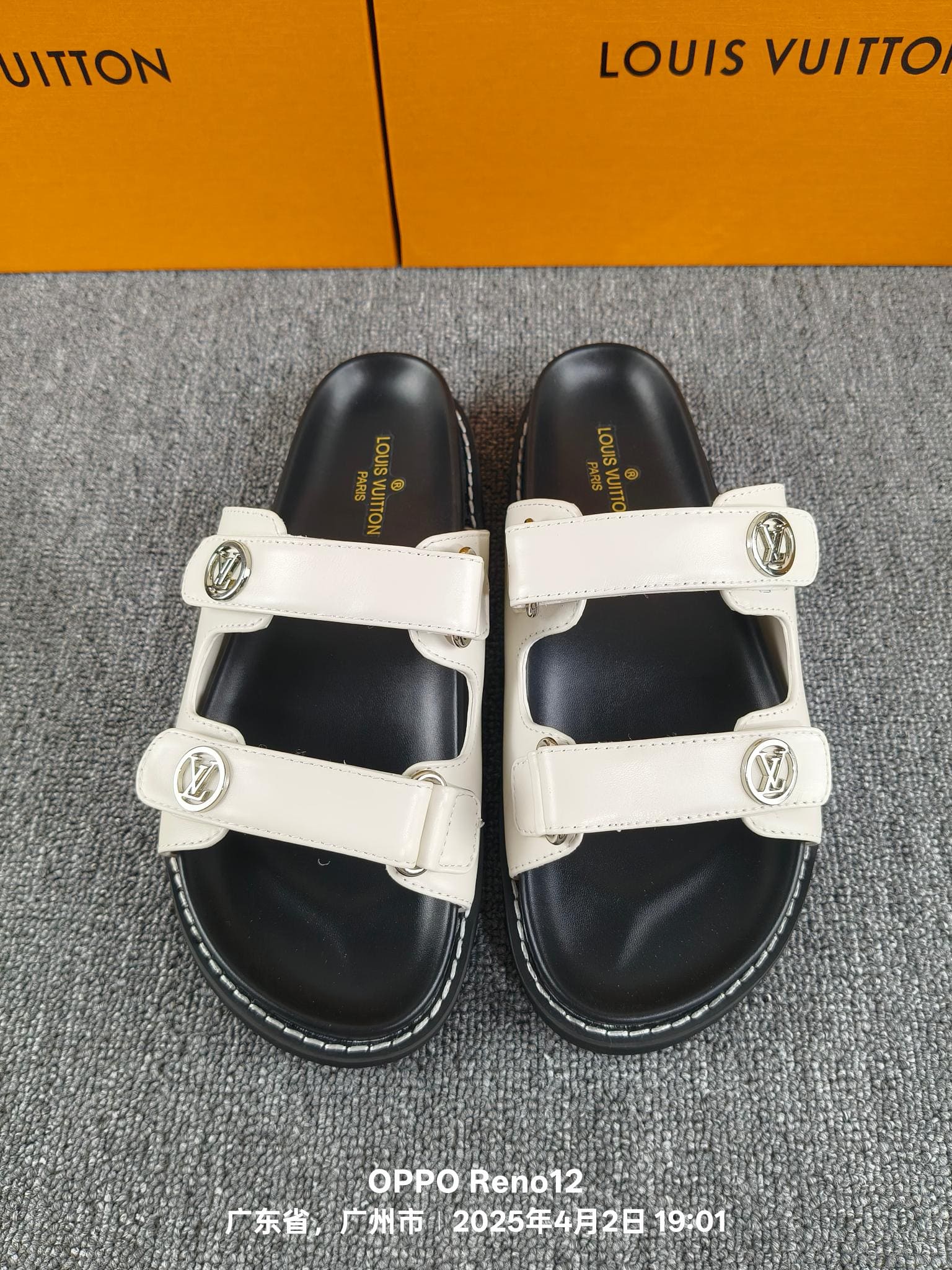 Features Two adjustable straps with engraved buckles, memory-foam insole for comfort, durable rubber tread with an LV Circle logo المميزات حزامين قابلين للتعديل مع أبازيم محفورة، نعل داخلي من الميموري فوم للراحة، مداس مطاطي متين يحمل شعار LV Circle