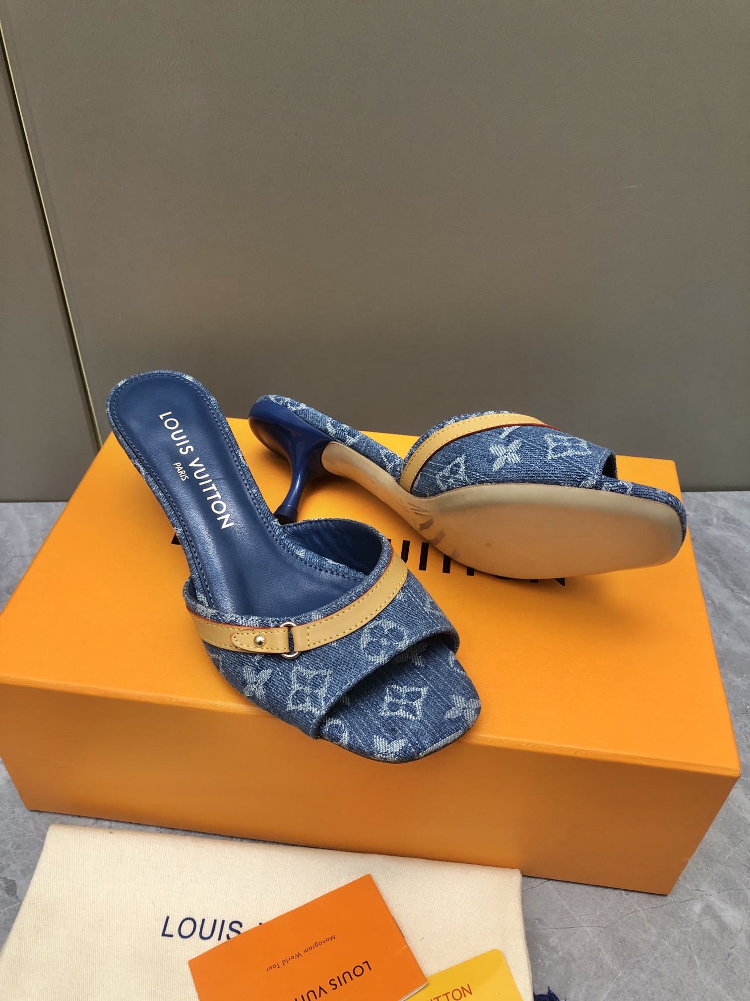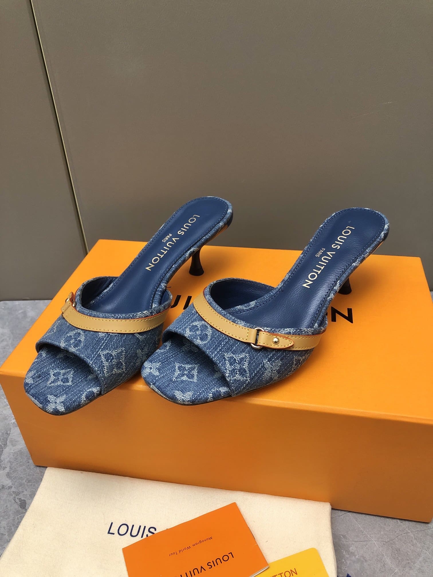 Material (Upper) Monogram denim canvas & natural cowhide trim قماش الدنيم بنقشة المونوغرام وحواف من جلد البقر الطبيعي