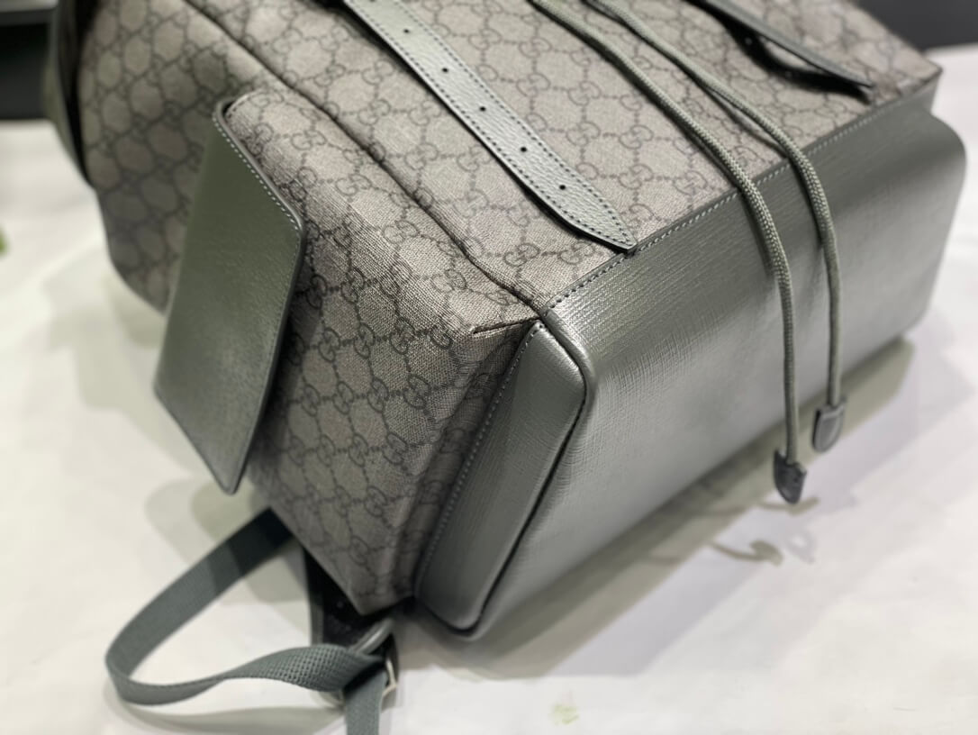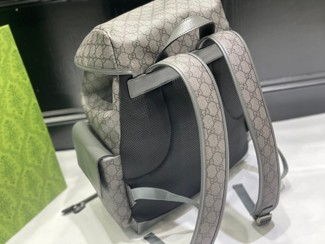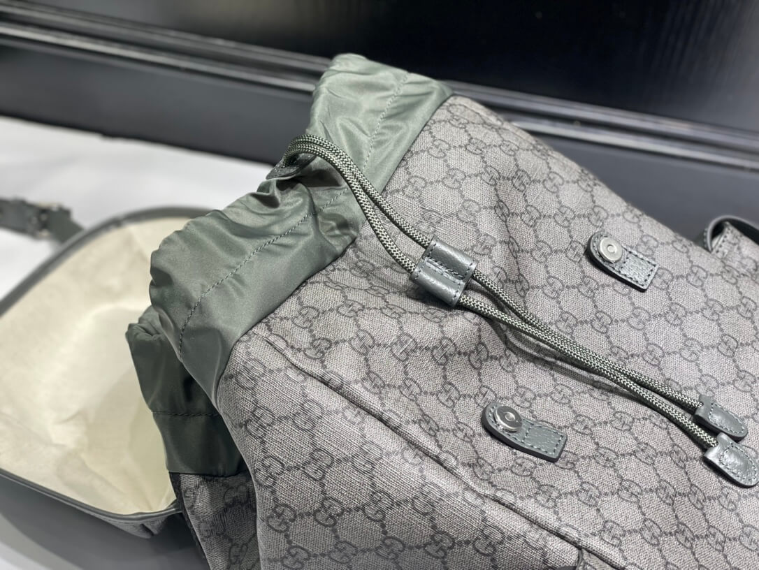 Material Soft GG Supreme coated canvas (synthetic canvas/PVC) with grey leather trim قماش كانفاس مغلف بنمط GG Supreme ناعم (كانفاس صناعي/PVC) مع حواف جلدية رمادية