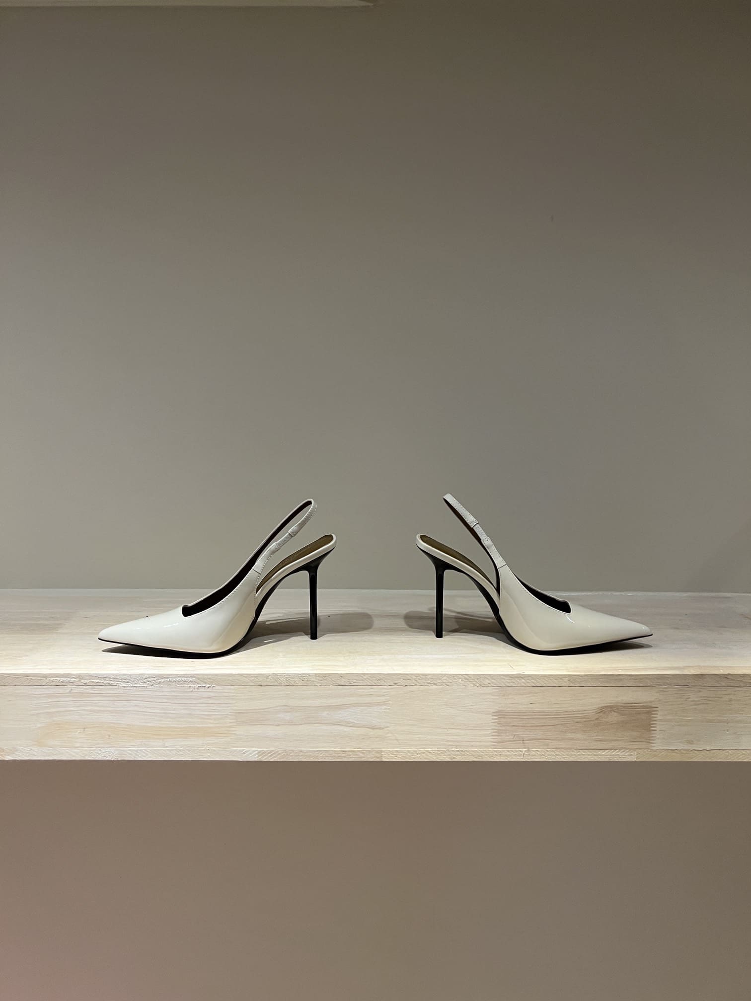 Style: Elegant, modern classic, stiletto slingback pump. نمط كلاسيكي عصري وأنيق، حذاء بكعب خنجر