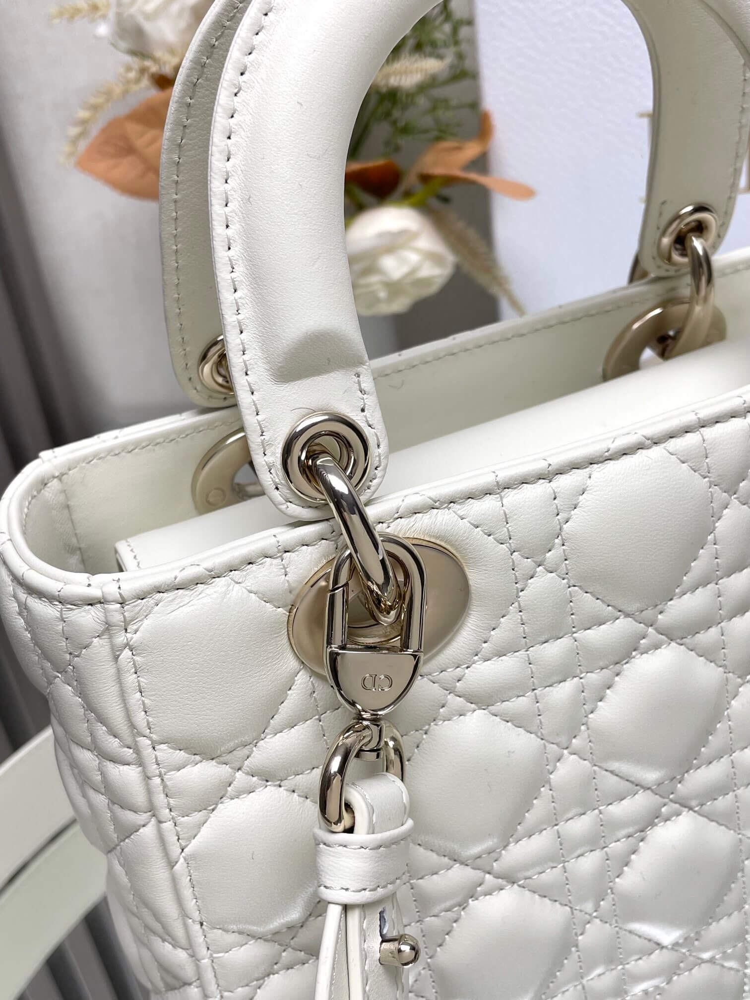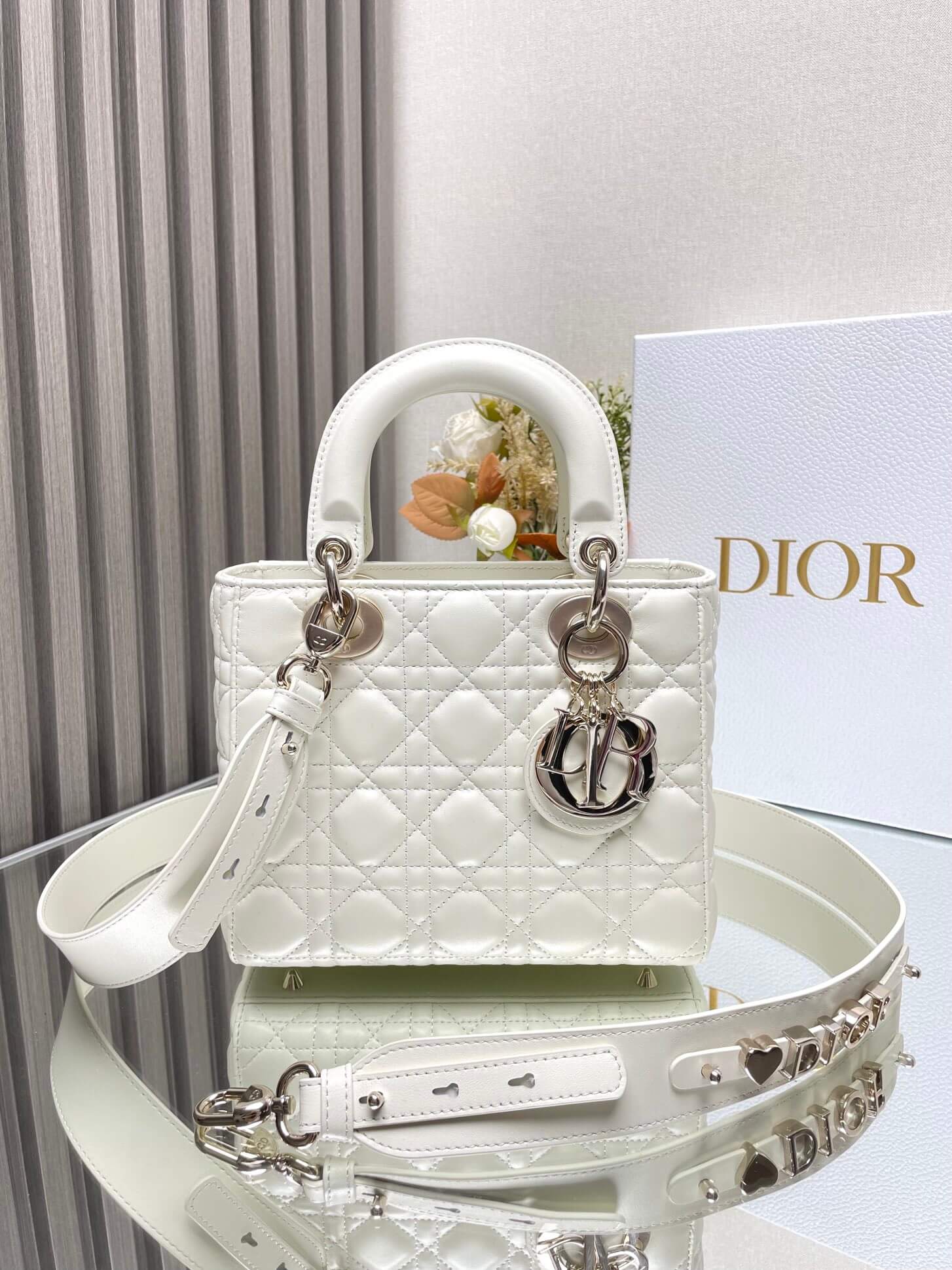 Description A timeless 2025 essential in milk white lambskin, featuring signature Cannage quilting and a customizable strap that accommodates up to six symbolic badges. قطعة أساسية خالدة لعام 2025 من جلد الحمل الأبيض الحليبي، تتميز بتطريز “كاناج” الشهير وحزام قابل للتخصيص يتسع لما يصل إلى ست شارات رمزية.