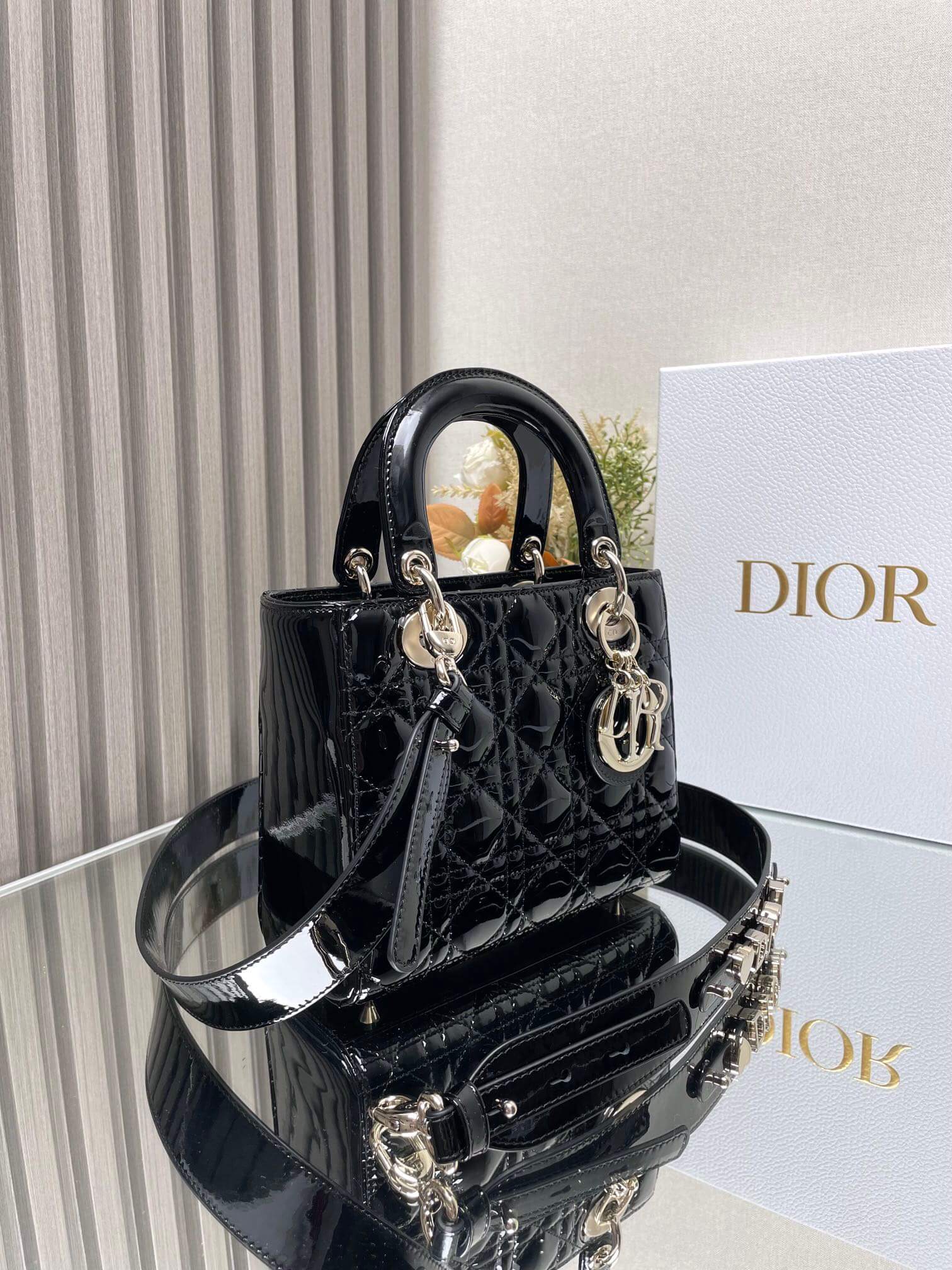 Description A 2025 timeless classic in black patent leather featuring the iconic Cannage quilting and a customizable strap for a personalized touch. كلاسيكية خالدة لعام 2025 من الجلد الورنيش الأسود بتطريز “كاناج” الأيقوني وحزام قابل للتخصيص لمسة شخصية.